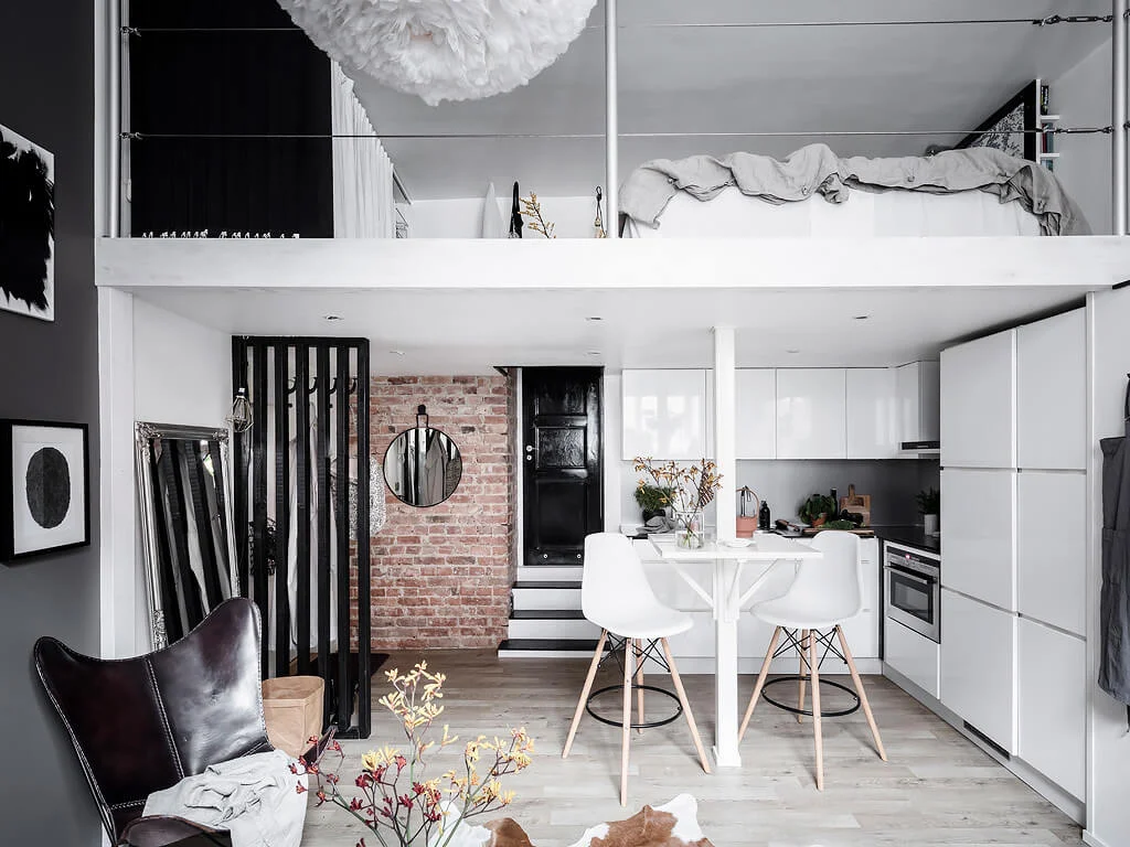 Malé bydlení nemusí znamenat stísněnost ani neustálé kompromisy. Loftový byt v Göteborgu o rozloze pouhých 34 m² je důkazem, že při chytrém návrhu může i jeden otevřený prostor působit překvapivě velkoryse. Klíčem je práce s výškou, jasně definované zóny a promyšlený mix minimalismu a osobních prvků. Přestože jde technicky o jednopokojový byt, díky vyvýšenému loftu s postelí získává interiér pocit oddělené ložnice – a tím i tolik potřebné soukromí. Skandinávský charakter bytu je čitelný na první pohled: monochromatická barevná paleta, jednoduché linie a absence vizuálního chaosu. Černá a bílá zde ale nepůsobí chladně ani sterilně – právě naopak. Stěny oživuje pečlivě vybraná kolekce obrazů a grafických tisků, které interiéru dodávají osobnost a hloubku. „Minimalismus neznamená prázdno. Znamená vědomý výběr,“ říkají stylisté, podle nichž hraje umění v malých bytech klíčovou roli: nahrazuje dekorace, aniž by zabíralo cenné místo. Výsledkem je prostor, který působí kultivovaně, ale zároveň zabydleně – jako domov, ne showroom.