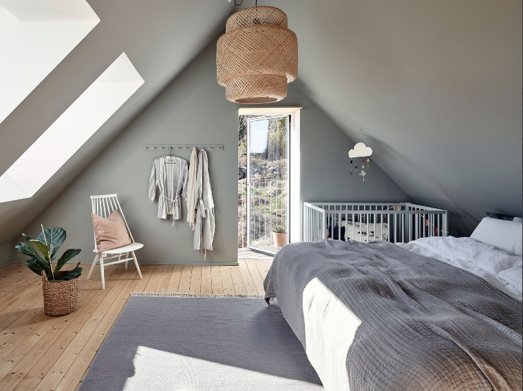 Po schodech vejdete do podkroví, kde na vás čeká hlavní ložnice a dva dětské pokoje. Ani zde se denním světlem nešetří. Jeho hlavním zdrojem jsou kromě střešních oken také francouzská okna vedoucí na balkony, které nabízí úžasný výhled na krásy ostrova.