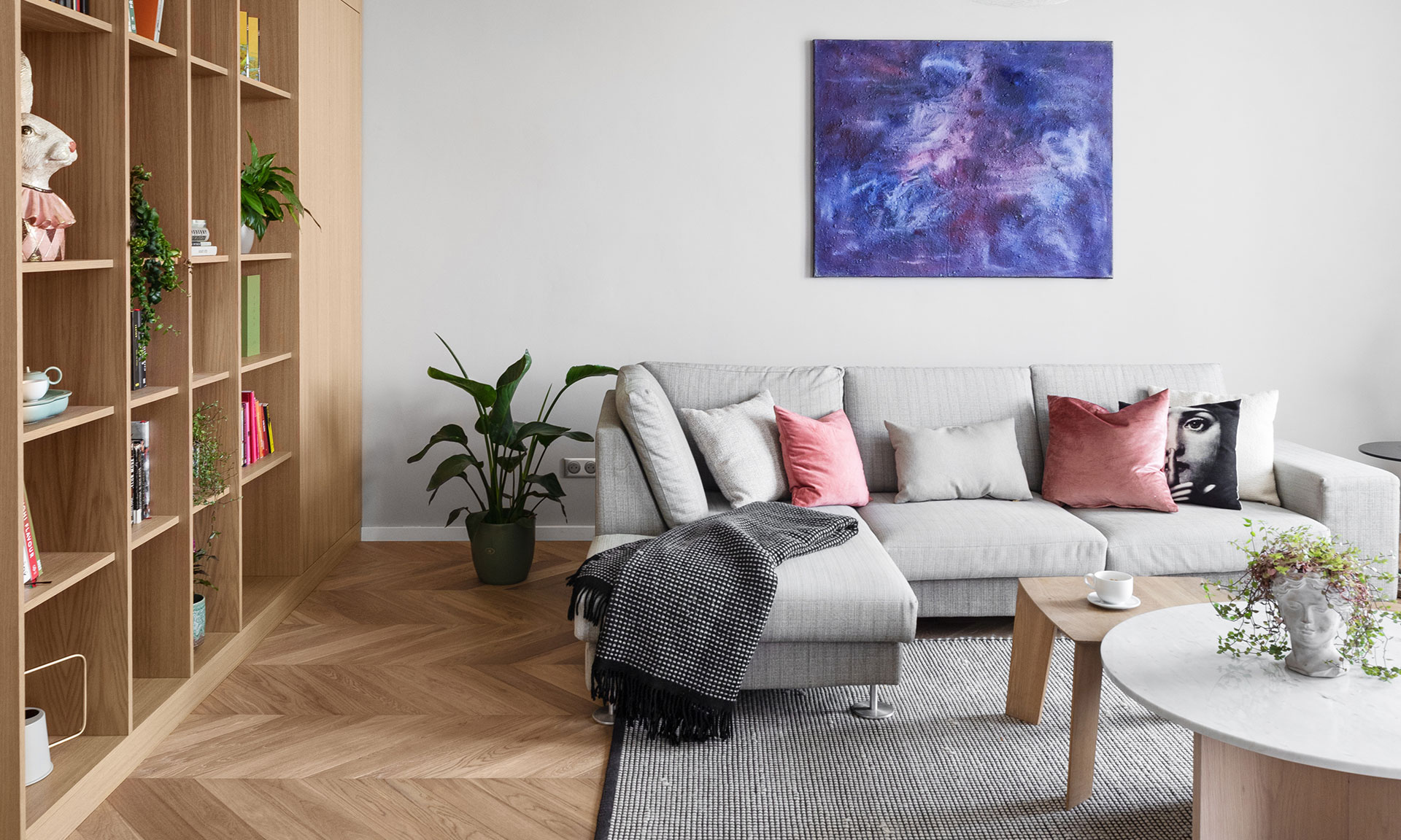 Celá rekonstrukce probíhala za účelem propojení dvou sousedních bytů nacházejícíh se na stejném patře, o velikosti 1+1 a 3+kk. Vznikl tak byt o dispozici 4+kk s rozlohou 140 m2. Byt má stále ponechané 2 původní vchody a slouží nyní jako dvougenerační, pro rodiče a dvě dospívající děti. Všichni mají nyní dostatek soukromí a k dispozici vlastní hygienické zázemí. Interiér nejvíce potřeboval provzdušnit, sjednotit, zmodernizovat, což se myslím povedlo. „Najdete zde krásně prostorné místnosti s vysokými stropy, kde se člověk necítí stísněně, a může se „nadechnout“ a v klidu porozjímat. Za stejně důležité považuji i kvalitu a pravost použitých materiálů a celkovou harmonii, která je však velmi subjektivní. Jelikož je samotný dům postaven kolem roku 1900, přišlo mi zcela přirozené respektovat jeho ducha a vycházet z tradičních materiálů a tvarosloví, jen ve zmodernizované, současné podobě. snad podařilo částečně zachovat ducha a noblesu starého činžovního domu a zároveň mu vdechnout nový, moderní look,” vysvětluje architektka Tereza Janků ze studia Tereza Janků Architecture & Interiors. Aby se hlavní obývací prostor mohlo zvětšit a propojit, bylo potřeba z obou stran ubourat mezibytovou příčku, která naštěstí nebyla nosná ani průběžná. Z té jsme nechali pouze středovou část, oddělující obývací pokoj od jídelny. Tu jsme plánovali ponechat od začátku, jelikož to umožňuje daleko lepší uspořádání prostoru. Celý pokoj je sice navzájem velmi propojený, ale stále tam zůstává jistá forma předělu a vymezení jednotlivých funkčních zón. Uspořádání takto také vychází daleko lépe, ze sedačky můžeme sledovat dění v celém bytě, a ne například sedět zády vůči jídelnímu stolu atd.