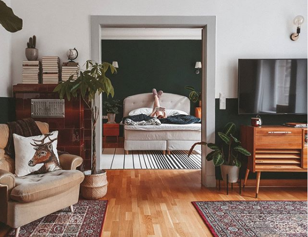Katharina Kölln je třicetiletá umělkyně na volné noze a stejně jako ona, je originální také její bydlení. „Naše krásná země a zvířata jsou pro mě velmi důležitá, proto jsem vegan a snažím se žít maximálně udržitelně. Proto u mě doma najdete především recyklovaný nábytek a když už tu mám nový kousek, pochází od soukromých dodavatelů. Hledám především po bazarech a na bleších trzích,“ vysvětluje Katharina.