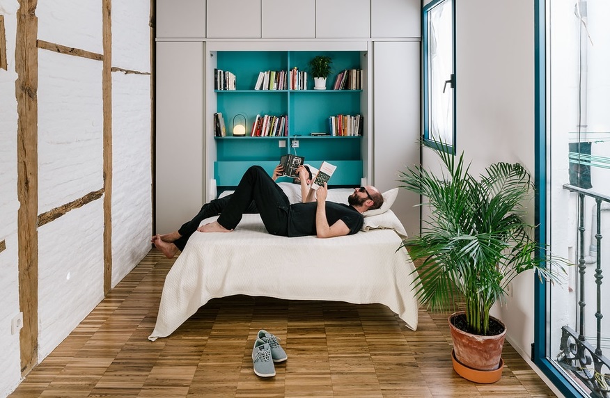 Jednopokojový třicetimetrový byt najdeme ve španělském Madridu. Prostor, který se skládá z malé kuchyně, zádveří, terasy a obdélníkové místnosti o rozměrech 7,47 x 2,80 m, dostali za úkol proměnit architekti ze studia Gon - Gonzalo Pardo. Interiér projdete velmi rychle. Z úzké chodbičky vkročíte rovnou do hlavní obytné místnosti, kde se odehrává veškeré dění. Zde jíte, spíte, pracujete, i přijímáte návštěvy. Malá terasa orientovaná na západ dodává interiéru potřebné světlo, které umocňuje bílá výmalba, kterou najdeme v dřív tmavé kuchyni. Kuchyňka je pouze malá úzká nudle. Za zrcadlovou stěnou, která vyvolává iluzi mnohem většího prostoru, najdeme šikovně ukrytou koupelnu.