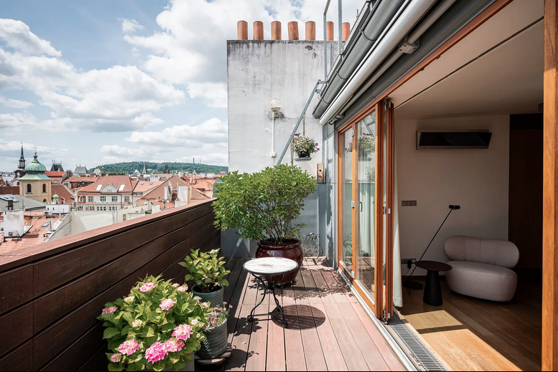 Výhled na stověžatou Prahu jako z pohlednice: Moderní mezonet s kouzlem starého města