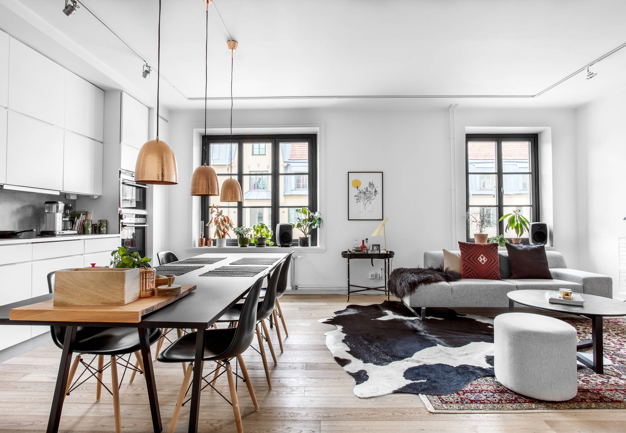 V bytovém domě v širším centru švédského Stockholmu najdeme bytový dům postavený v roce 1912. Jeno interiér byl po letech chátrání důkladně opravený, přesto se podařilo zachovat si něco z historie. Vysoké stropy, veliká okna, příjemné dispozice. To byly základní ingredience, se kterými měli architekti dál pracovat. Bylo potřeba vyřešit nové topení, položit nové podlahy, navrhnout a nechat vyrobit moderní kuchyň. Na podlaze jsou v celém bytě kromě hlavní ložnice a koupelny masivní jednovrstvé dubové parkety. Sedmdesátimetrový byt byl nakonec opravený klasickým způsobem. Dominují mu bílé zdi i bílý nábytek, které jsou v kontrastu s tmavými rámy oken a tmavými dekoracemi.