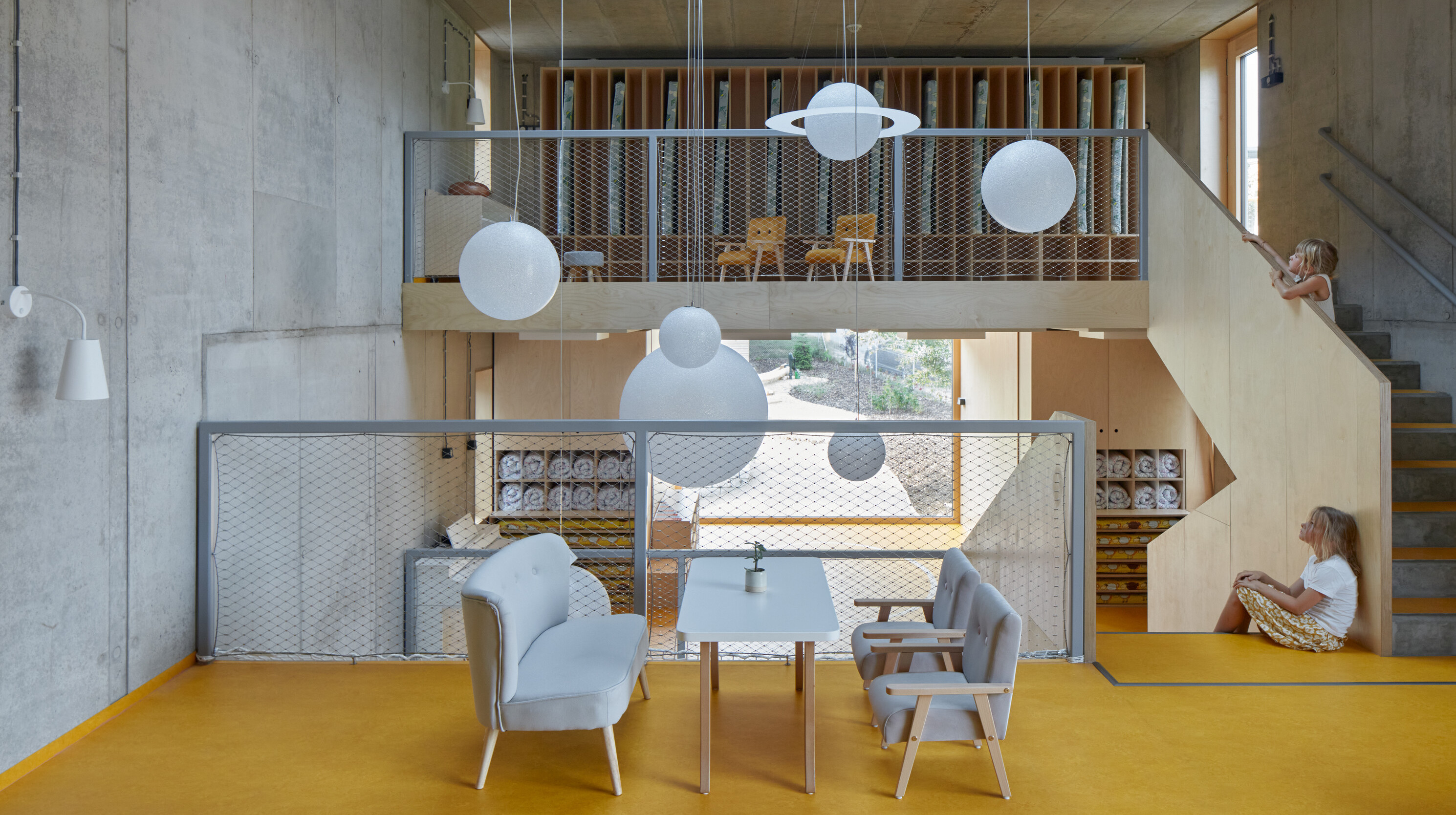 „Školka, do které jsem chodil jako dítě, byla původně farou v centru města. Za komunismu ji přestavěli, aby sloužila novému účelu. Vlastně tam bylo všechno špatně, přesto mám k oné stavbě a její zahradě celý život výjimečný vztah. Snažím-li se rozpomenout, co si pamatuji z let, kdy jsem do školky chodil, není toho moc. Jsou to útržky paměti, neskládají se v celistvé prostředí, zato jsou překvapivě přesné v detailech,“ popisují architekti z ateliéru Mjölk architekti. „Když začnete stavbu školky jako architekt řešit, zjistíte, že společnost a instituce opletly tyto stavby naprosto neproniknutelnou pavučinou různých nesmyslných norem, zákazu a příkazů. Chcete vytvářet místo s jasným účelem – dělat radost dětem při zkoumání světa a místo toho počítáte složitou matematickou rovnici. Počítáte kubické metry vyměněného vzduchu za určitý čas. Prokazujete, že všude bude stálé normové osvětlení každého čtverečního metru. Stavba nesmí být ze dřeva. Jako proč? A nesmí mít víc než dvě patra. Proč? Nevíme. Děti, na kterých v procesu návrhu záleží nejvíc, jsou z něj zcela vynechány. Přitom víme, že jsou schopny se architektonickými nápady vážně zabývat a soustředěně odpovídat na otázky, co by pro ně bylo nejlepší,“ vysvětlují architekti úskalí, se kterými se už od prvotního návrhu museli potýkat. Ale nedali se zaplašit! Výsledkem jejich práce je stavba, která si přímo říká o blbnutí. Děti smějí lézt na střechu, a kromě občasných vší si odtud budou odnášet ujištění, že svět je krásné a zábavné místo pro život.