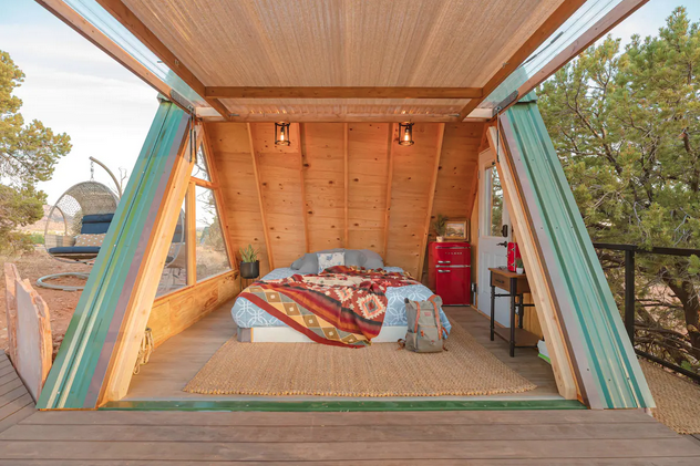 Majitelé této jedinečné stavby se rozhodli, že hlavní roli zde bude hrát výhled, a to přímo z postele. Umístili proto subtilní dřevostavbu do srázu a doplnili ji o systém teras a schodišť, aby vytvořili dostatečný obytný prostor. Výhled, o kterém mluvíme, je vskutku dechberoucí. Od rána do noci si návštěvníci mohou užívat úchvatné panorama pohoří Sion v americkém státě Utah. Jedná se o stát na západě Spojených států amerických, v horské oblasti. Místo s velmi nízkým počtem srážek, usnadnilo majitelům technické záležitosti a návrh i stavba této chatky byla o to jednodušší.