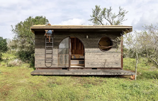 „Naším cílem bylo zachovat industriální duši kontejneru, ale přetvořit ho v plně obyvatelný prostor, který nabízí komfort, funkčnost a propojení s přírodou,“ vysvětlují autoři projektu z Madeiguincho – Gonçalo Marrote, João Filipe, Ramiro Carro, Rui Peixoto, Hugo Santos a Lucas Marques. Dispozice je promyšlená do posledního detailu: vyvýšené lůžko skrývá úložný prostor, L-kuchyně nabízí veškeré nezbytné vybavení a koupelna se sprchou je oddělena mléčnou stěnou, která propouští denní světlo. Zachovány zůstaly i původní dveře kontejneru – po jejich otevření se interiér zcela propojí s krajinou. Cargo House je tak dokonalou ukázkou moderního minimalismu, který dává starým strukturám nový život.