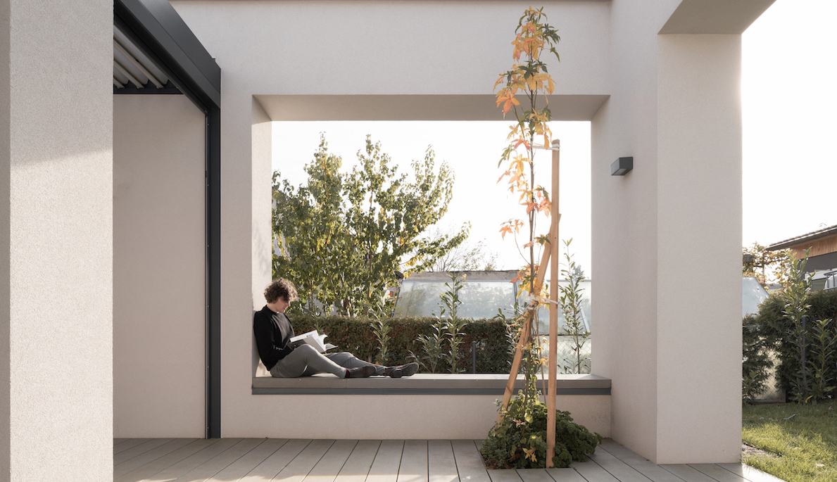 Vnitřním prostorám dominuje vestavěný nábytek. Díky tomu stačilo klientům doplnit jen pár solitérních kousků. Interiér takto působí minimalisticky, vzdušně, ale zároveň útulně. Díky dispozičnímu řešení se podařilo umístit obývací prostor s kuchyní, ložnicemi a koupelnami na úrovni zahrady, zatímco garáž, technická místnost a sauna se nacházejí na úrovni ulice. Realizace tohoto domu spustila řetězovou reakci. Sousedé pod vlivem stavby začali zvelebovat svoje vlastní bydlení. Kvalitní architektura tak má prokazatelný přínos na své okolí.