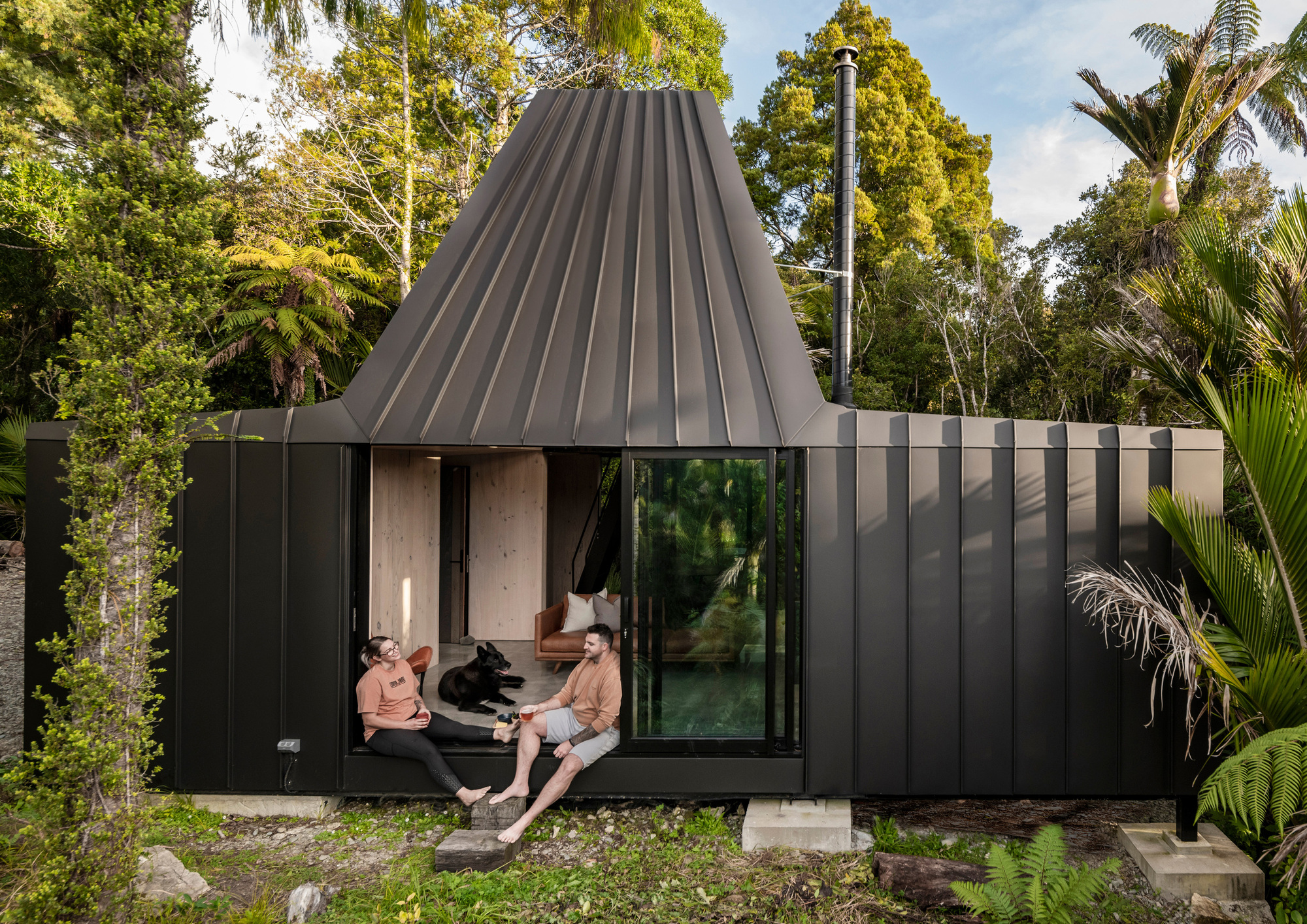 Nacházíme se na západním pobřeží Nového Zélandu, kde nedaleko vesnice Punakaiki vyrostla první ze staveb od architektonického studia Fabric pod vedením architekta Mitchella Colla, které mají sloužit jako špičkové krátkodobé ubytování pro unavené cestovatele. Estetické pojetí navazuje na historii a má být volnou reinterpretací klasické zlatokopecké chatrče, avšak s moderním vybavením. Otevřený půdorys a velké množství oken a prosklení nabízejí cestovatelům všestranný zážitek, zatímco vyváženost minimalismu a luxusního vybavení je tak akorát, aby si chatka zachovala důraz na jednoduché bydlení, které bude pohodlné a nezapomenutelné zároveň. Odolná betonová podesta je připevněna na několika betonových pilotech bez formálních terénních úprav podporuje estetiku jednoduchého bydlení. Spojení pilotů s nosiči má nastavitelnou konzolu, která umožňuje budoucí vyrovnání, pokud by došlo k sesuvu půdy.