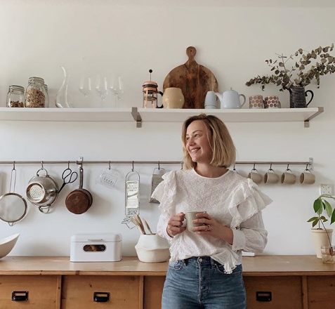 „Pro mě je domov místem, kde se dá žít. Nemůže být příliš dokonalý. Všechno v domácnosti musí být dovoleno používat a mělo by mít nějaký účel. Ale samozřejmě se mi líbí, když věci vypadají dobře, takže budu mít radši müsli v pěkné skleněné nádobě než v papírovém balení. A miluji polštáře, takže máme všude hodně polštářů. Rostliny jsou také skvělým způsobem, jak zajistit, aby byl prostor živý a útulný,“ vysvětluje. „Náš domov se často mění, ale obecně platí, že větší kusy zůstávají. Mám ráda neutrální základ, kde pak sezónně měním textil, dekorace a nějaké umělecké předměty. Mým absolutním snem by byl vzdušný a světlý dům s velkými okny, bílými stěnami a spoustou uměleckého a klasického skandinávského designového nábytku.“