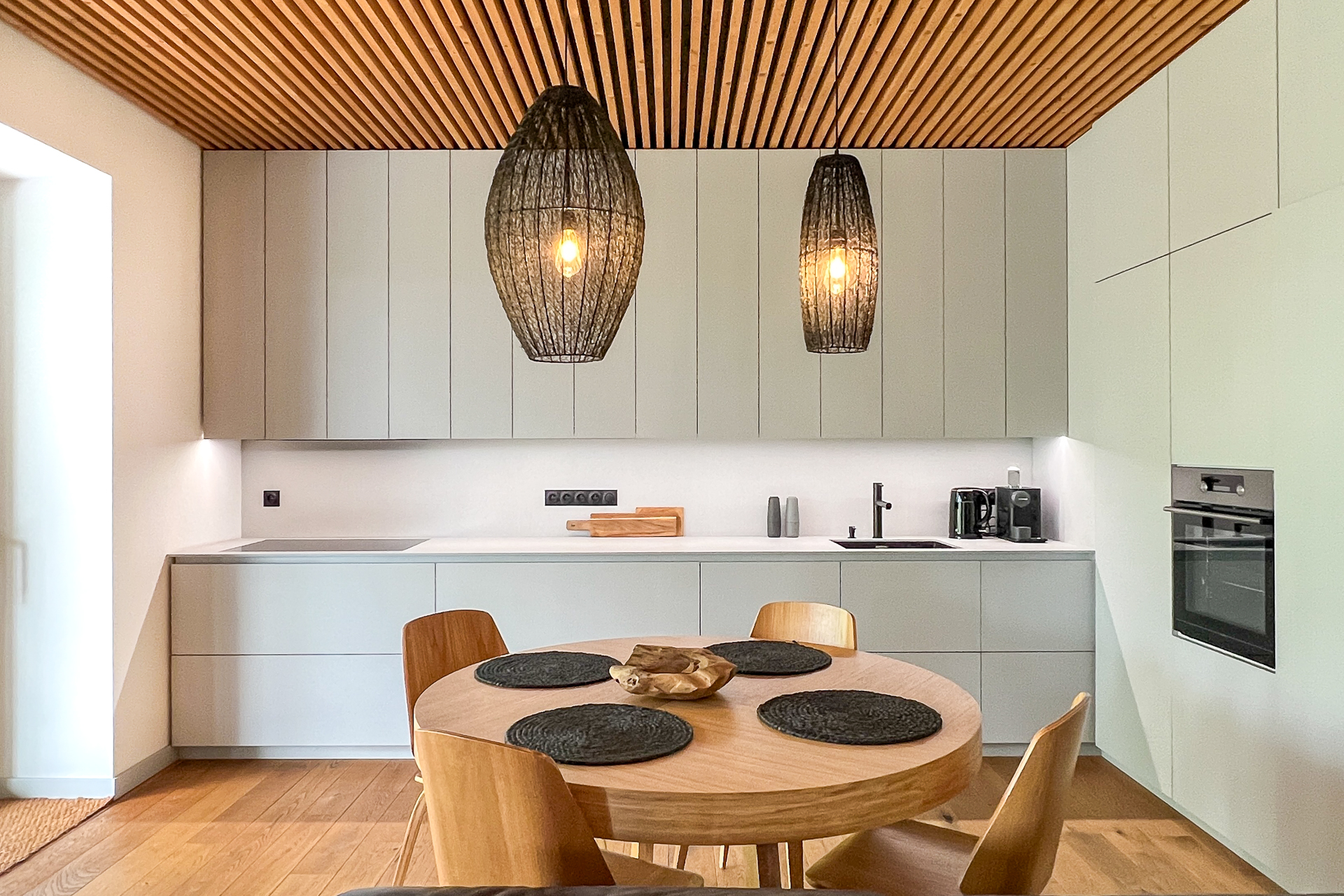 Při kompletní rekonstrukci majitelé využili pouze obvodovou část přízemí jedné z budov a nebáli se vdechnout budově architektonicky moderní pojetí bydlení tak, aby mohla velmi dlouho sloužit svému účelu - být domovem v dnešní době, která má tak vysoké požadavky na komfort.