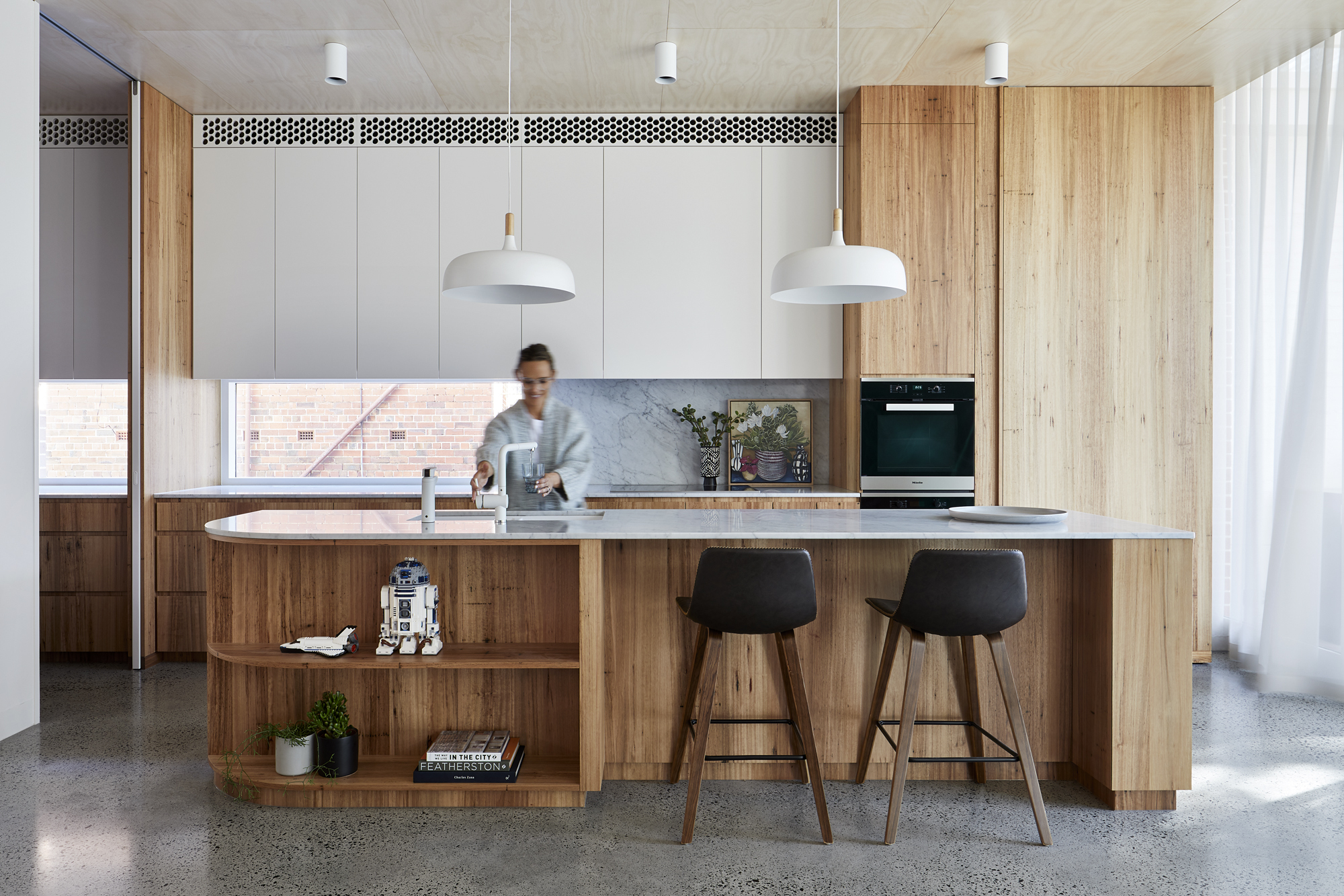 Dům nazvaný Deco najdeme v australském městě Kew. Budova s obytnou plochou 199 m² je jednou ze série šesti zrcadlově otočených staveb v klidné tiché ulici. Architekti ze studia Mihaly Slocombe měli za úkol vytvořit bydlení pro budoucí mladou rodinu, které bude variabilní a schopné neustále se přizpůsobovat měnícím se potřebám rodiny. „Když majitelé dům koupili, byli nadšení jeho umístěním i některými architektonickými prvky. Co je naopak zklamalo byly tmavé a stísněné místnosti. Proto nás požádali, abychom interiér uzpůsobili tak, aby byl hřejivý, se spoustou světla a dostatkem ložnic pro budoucí děti. A to všechno tak, aby zůstal zachovaný styl původní stavby,“ popisují architekti.