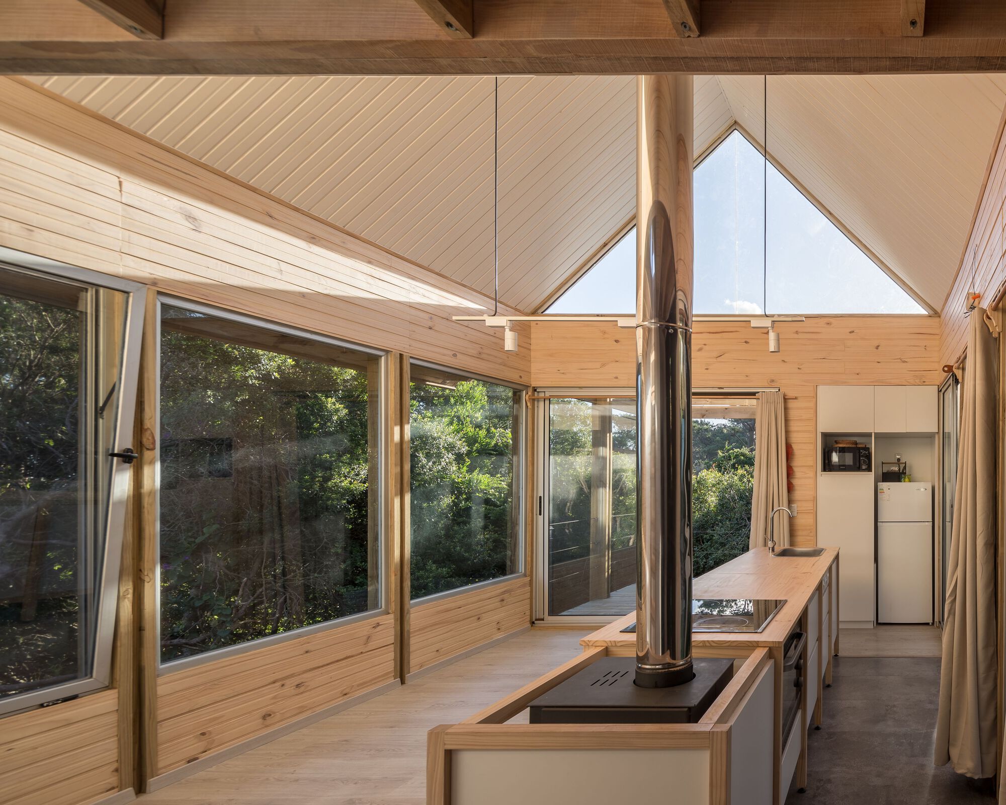 Zásadním kritériem při návrhu jednoduchého prázdninového domku byl důraz na místní ekosystém, který nechtěli architekti nijak zatížit. Do posledního detailu také využili tvar pozemku.