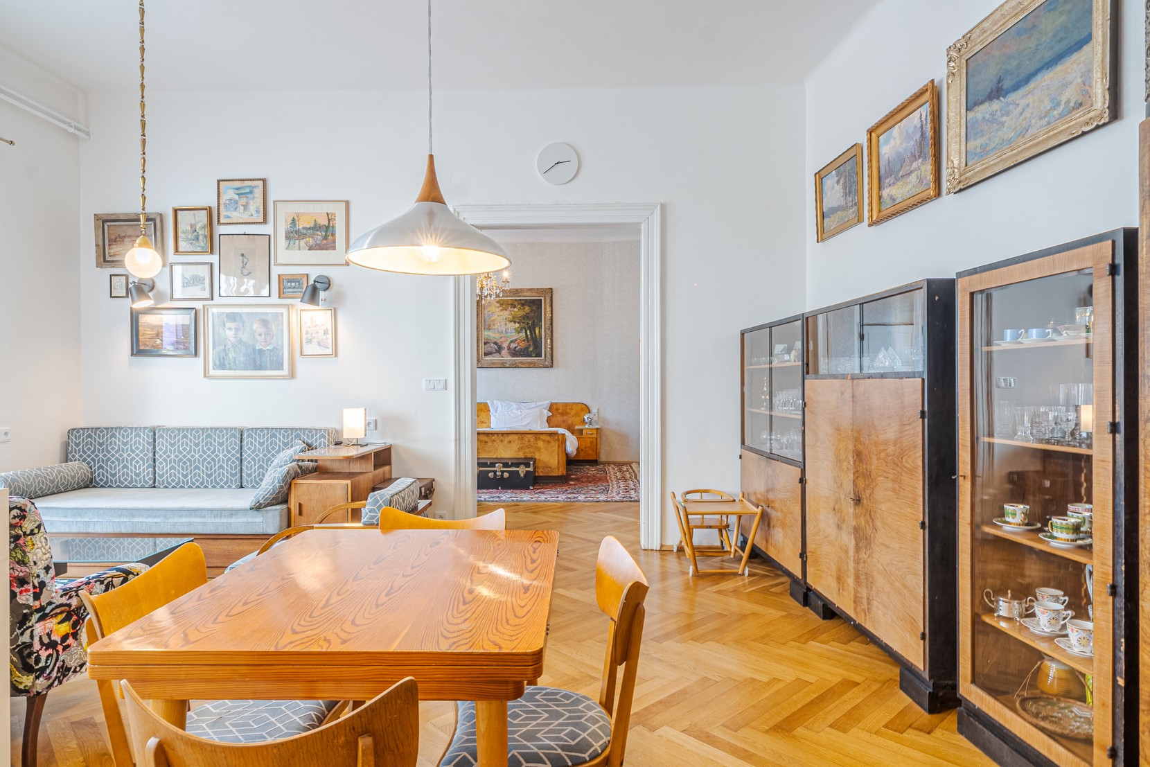 Více než stometrový byt po váženém měšťanovi a současně podnikateli s kávou a likéry potřeboval víc než kosmetickou rekonstrukci. Bylo nutné udělat nové rozvody, novou koupelnu a záchod, stavební úpravy, renovace a dokládku parket, změnu dispozice a stržení snížených stropů. Jak se proměna zadařila?