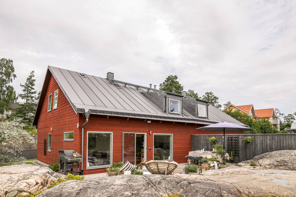 Klasická skandinávská dřevostavba s červenou fasádou stojí v malé obci Boo Gård, asi hodinu cesty od Stockholmu. Domek vychází z tradiční švédské architektury, kterou transformuje do moderní podoby a mladé rodině poskytuje dokonalé pohodlí i uprostřed kruté severské zimy.