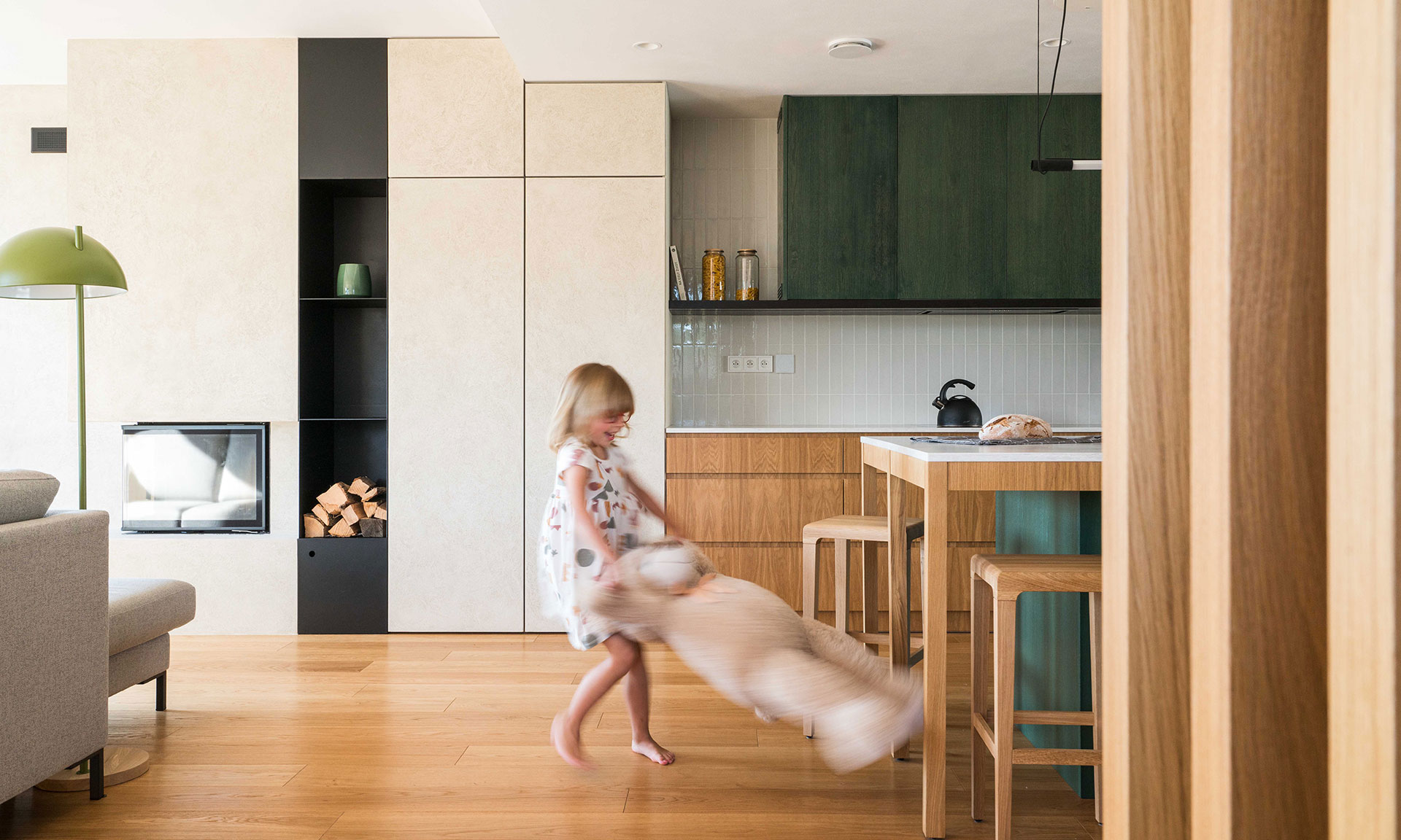 Otevřený prostor je srdcem bytu pro celou rodinu