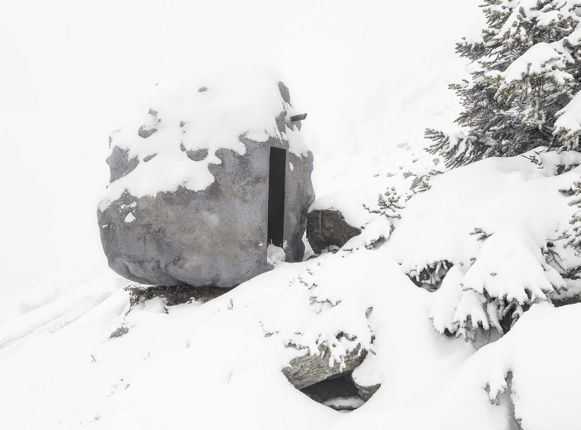 Vojenská architektura vedená principy kamufláže, již popsal francouzský filozof Paul Virilio v roce 1975, architekty dlouhodobě fascinuje. ANTOINE je alpským útočištěm a místem, kam se mohou turisté uchýlit, když je znenadání v horách přepadne zhoršující se počasí. Obsahuje úplně základní architektonické prvky - krb, postel, stůl, stoličku, okno. Je schovaná uprostřed skal a najít ji je skutečným oříškem. Chata ANTOINE vznikla na zakázku umělecké rezidence Verbier 3d Foundation. Byla svépomocí postavena v obci a převezena do vysokohorské oblasti. Během šesti týdnů byl jejích interiér dotažený k dokonalosti a dnes o ní její autoři mluví jako o obydlené soše.