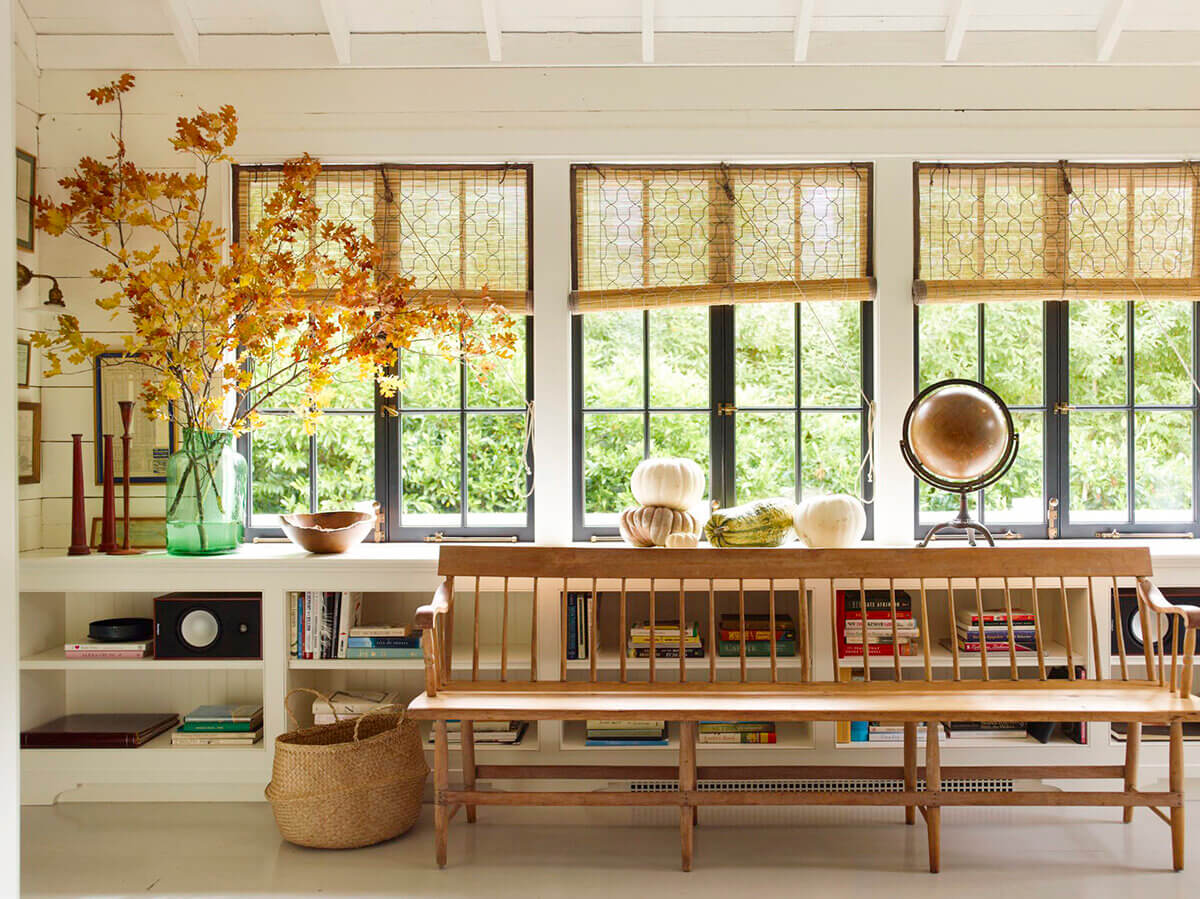 Celý dům je plný útulných zákoutí. Pod okny jsou úložné lavice, na které se můžete posadit, podobně útulný koutek je pod schody, nebo v obývacím pokoji. Všechny truhlářské prvky byly vyrobené na míru nebo repasovány. Rodina se může rozhodnout, zda své přátelé uvítá v jídelně, v prosklené verandě, u krbu nebo v hlavním obývacím pokoji, jehož francouzská okna je možné otevřít do krásné zahrady. Většina interiéru je vymalovaná bíle, o to víc vyzní barevné akcenty na dekoracích a nábytku. Hlavní roli má v tomto domě dřevo ve všech podobách. Občas je ponechané namořené, jindy bíle lakované, dočkalo se i pastelových tónů nebo tmavého dekoru, v koupelně má dokonce šachovnicový vzor. Ačkoli se může zdát, že je interiér zařízený nahodile, každá z věcí byla pečlivě vybraná, aby spolu s ostatním vybavením vytvářela harmonický celek.
