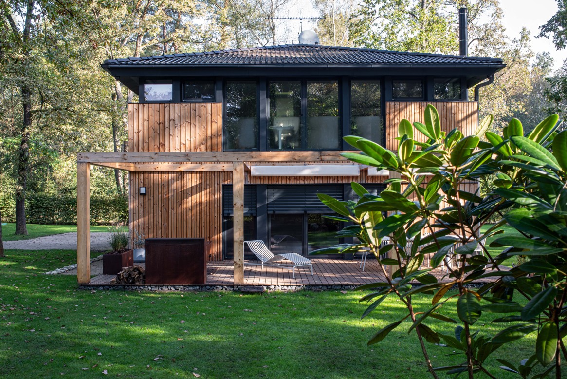 Ve stínu stromů historické rekreační osady na Nymbursku se odehrála proměna, která ctí původní atmosféru místa a zároveň nabízí současné, světlé a útulné bydlení. Katalogový domek německého původu získal nový kabát v podobě thermoborovicového obkladu, ale zásadní změny proběhly uvnitř. „Záměrem bylo vytvořit co nejprosvětlenější interiér, ale přitom zachovat všechny vzrostlé stromy, které jsou pro místo naprosto určující,“ vysvětluje hlavní autorka rekonstrukce Ing. arch. Tereza Čudová Ajmová. Dispozice zůstala téměř beze změn, ale došlo k zásadní úpravě – přesunutí a odlehčení schodiště, které nově odkrývá výhled do zahrady.