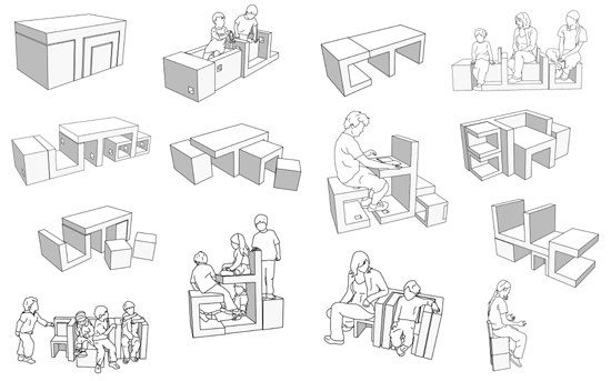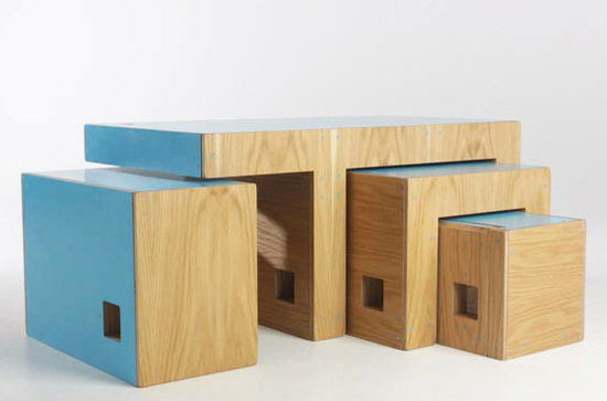 A tady je ta stavebnice pro dospělé! Jmenuje se Restyle, navrhnul jí britský designér James Howlett a můžete si s ní hrát celé hodiny. Postavíte z ní kávový stolek, stěnu s policí i sadu dětského stolku a dvou stoliček. Nebo třeba stolek na notebook i s židlí.