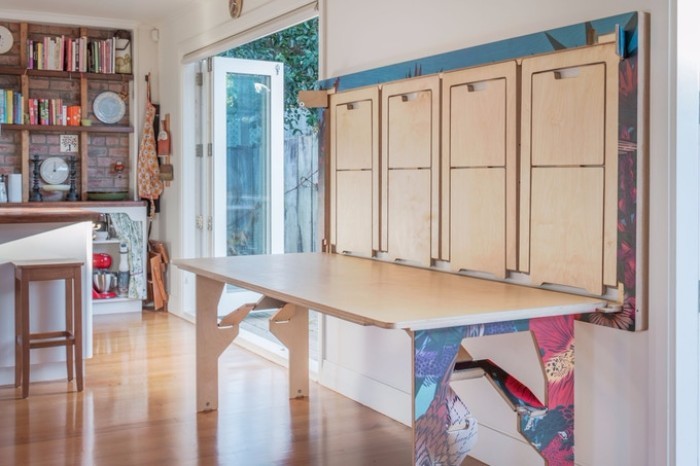 Snap Jack je ideální způsob, jak do malé místnosti vmáčknout navíc pracovní kout nebo malou dílnu. V kuchyni zas díky němu můžete stolovat na úrovni, i když tu počítáte každý centimetr! Foto: Livingwithjack.com