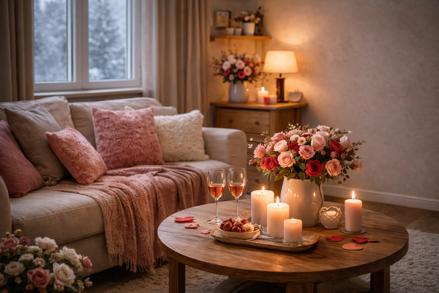 Základem valentýnského interiéru jsou doplňky v červených, růžových a krémových tónech. Tyto barvy vnášejí do prostoru emoce, ale nepůsobí příliš výrazně. Důležité je, abyste je využívali střídmě a vhodně kombinovali s neutrálním základem. Vázy s organickými tvary, dekorativní mísy, svícny nebo drobné objekty s oblými liniemi působí měkce a elegantně. Právě tyto nenápadné prvky dodávají interiéru osobitost a romantický charakter bez nutnosti zásadních změn. Velkou roli hraje také textil. Ložní povlečení v růžových odstínech promění postel v něco, co zaujme na první pohled. Jemné materiály, vrstvení peřin a polštářů v kombinaci růžové, bílé a krémové vytvářejí pocit pohodlí, intimity a klidu. Ideální místo pro romantický večer.