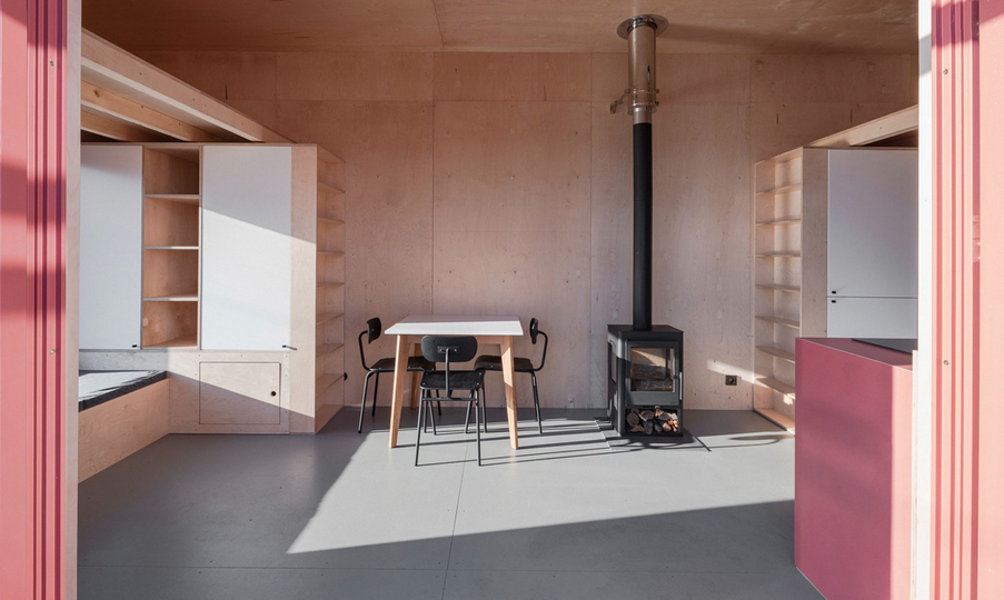 Složité rekonstrukce, zdlouhavé legislativní procesy výstavby, snaha o optimalizaci procesu výstavby, stále rostoucí finanční nároky na vlastní bydlení... To všechno vedlo českou firmu Wheel house k tomu, aby se pokusily navrhnout typizovanou moderní maringotku. Mobilní, dostupné, soběstačné a plnohodnotné bydlení pro čtyřčlennou rodinu o užitné ploše 19,2 m2 (bez spacích pater). Konstrukce maringotky je složena ze dvou částí. Spodní část, což je ocelový podvozek včetně rámové konstrukce vynášející dřevěnou sloupkovou konstrukci horní části. Ocelový podvozek je nesen dvěma nápravami s oboustrannými závěsy umožňující zapřáhnutí za běžné zemědělské stroje a vyvezení na libovolné místo. Atypický podvozek umožňuje vyšší světlou výšku samotného objektu, což mimo jiné přináší možnost dvou vyvýšených spacích pater, které pak prostorově neomezují samotný obytný prostor. Ten je pomyslně funkčně dělen dle jednotlivých činností. Jako klidová, pobytová část slouží vestavěná pohovka s knihovnou a dostatečným prosklením umožňujícím výhledy do krajiny.