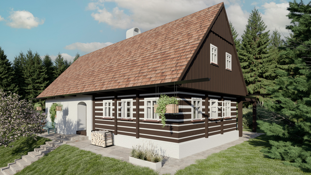 Pomněnková roubenka je přesně takovým místem. Každý detail této rekonstruované roubenky byl pečlivě promyšlený, aby vyvolával příjemné emoce a přinášel pohodlí a příjemné zážitky. Večery trávíte ve svém soukromém wellness, na terase sledujete západ slunce, vaše děti běhají po zahradě. Vdechnout nový život do 200 leté roubenky byl hlavní směr, kterým se architekt Ondřej Červenka vydal hned po prvním setkání s klientkou. Roubenka patřila rodině po generace. Byla svědkem mnoha rodinných radostí, ale i jedné smutné události. „Proto vzniklo v majitelce nutkání k rekonstrukci, která přinese nový život. Stará roubenka byla přeměněna na prostor, který odráží osobnost klientky, její životní styl a bude jí každý den přinášet radost. Šlo o to, ochránit původní atmosféru roubenky, ale využít i nejmodernější možnosti a vymoženosti. Podařilo se tak získat nový prostor, světlo, pohodlí a dokonalé zázemí pro zimní víkendy a v budoucnu pravděpodobně trvalé bydlení,“ vysvětluje architekt.
