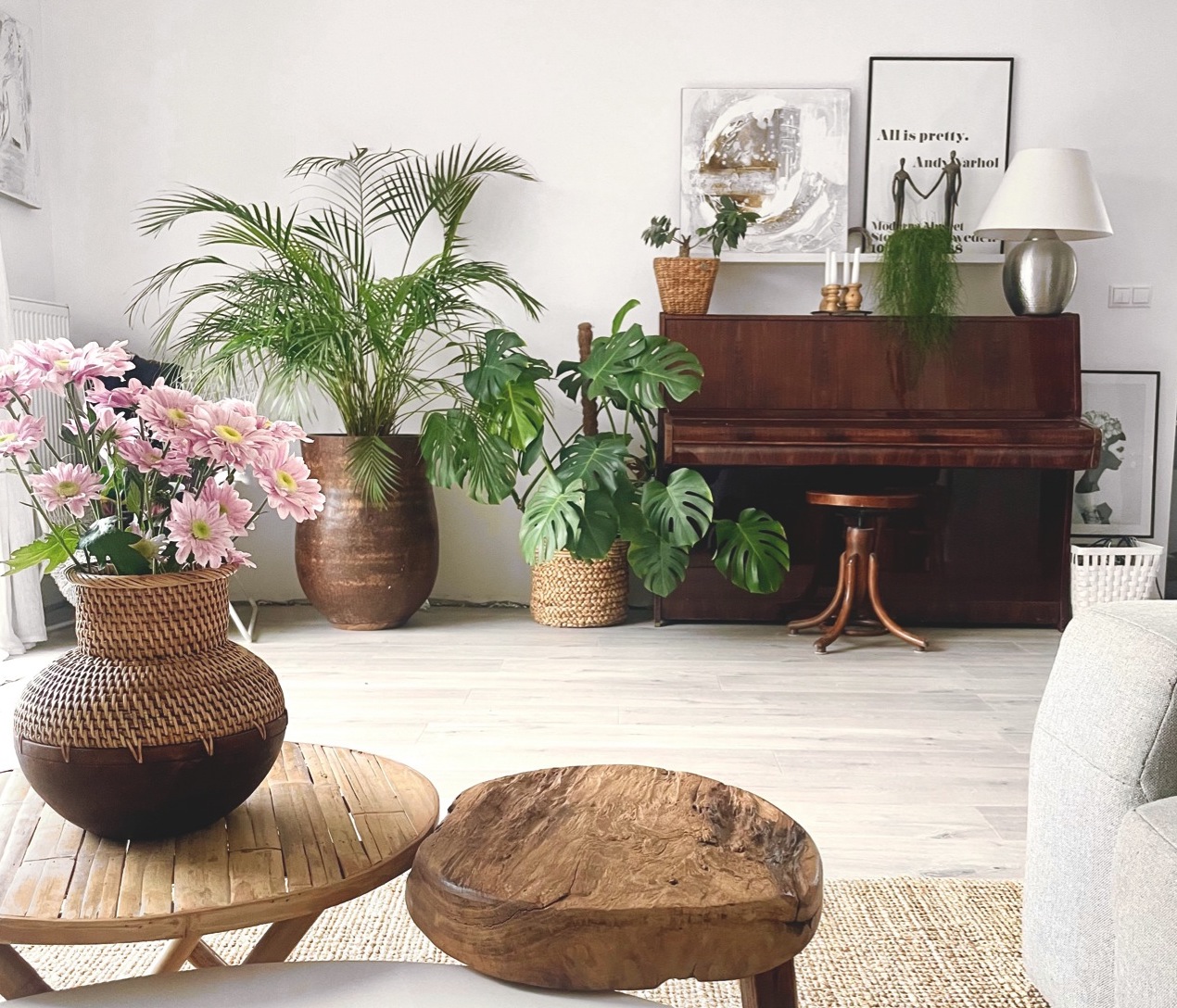 Marcela už nechtěla žádné dekorace stylu každý pes jiná ves. Všude musela zavládnout čistá bílá kombinovaná se zemitými barvami a hlavně dřevo. „Mám úžasného chlapa, který mě podporuje a dokáže vyrobit, na co si jen vzpomenu. Často mi s nadsázkou říká, že já jsem architekt a on je dělník. Doma tvořím svůj vlastní styl, v němž nenásilně kombinuji boho, nordic a přírodní styl. Asi nejvíc vidět je to v kuchyni, kde moderní minimalistické lince a designovým židlím kontrastuje teakový stůl doplněný ratanovými lustry. Výrazných dekorací mi v domě stačí pár – třeba obří květináč vyřezaný z palmy nebo odkládací stolky. Většina věcí pochází z Bali a vnášejí sem neskutečně dobrou energii. Potkávají se tu různé druhy dřevin, ale protože jsou v podobném odstínu, vůbec ničemu to nevadí,“ vysvětluje Marcela. Neutrální barvy interiéru oživují pokojovky, kterých je v domě požehnaně. Zásluhu na tom má prý hlavně Miroslav, který by jich měl nejraději jednou tolik. A co na maminčino kreativní řádění říkají děti? Desetiletý Oliver si ve svém pokojíčku libuje, hlavní prý je, když vidí na své sportovní trofeje. A třináctiletá Laura je prý pyšná, když se jejím kamarádkám odsud nechce odejít.