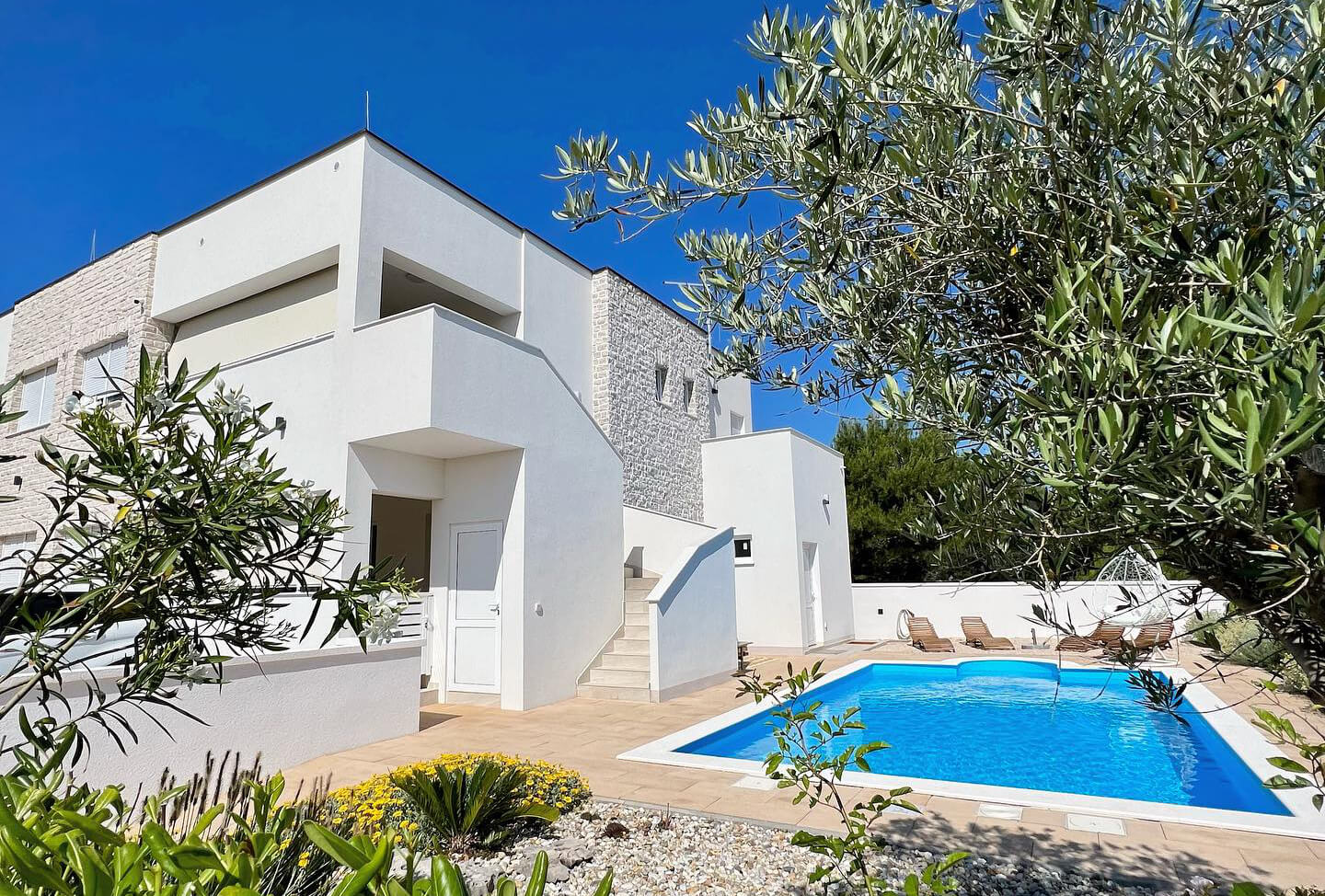 A proč Villa XXII? „Moje dcera a zeť odjakživa milují číslo 22. Je to z mnoha důvodů jejich šťastné číslo. Nebudete věřit, ale až když jsem se rozhodla, že dům koupím, tak jsme si s dcerou všimly, že se vila nachází v ulici Straža XXII. Když jsme společně i se zetěm hledali nějaké jméno, tak okamžitě zvítězil název Villa XXII. Líbí se mi stále a pro všechny z nás představuje jen ty pozitivní emoce. Jako by mi tento projekt vesmír nadělil jako odměnu.“ Interiér stojí na přírodních materiálech, světlých barvách a střídmosti. Dřevo, kámen a kvalitní obklady vytvářejí klidné prostředí, které neruší výhled ani světlo od moře. Kov a sklo tady tolik nenajdete, protože majitelka tyto materiály příliš ráda nemá. Barevnost zůstává úsporná, maximálně ve třech tónech. Díky tomu působí prostor čistě a přehledně, přesto příjemně. „Nesnáším přeplácané interiéry s mnoha věcmi. Dávám přednost dvěma, maximálně třem barvám, které spolu ladí a vědomě se propojují, ať už nábytkem nebo všemi povrchy. Nakonec ale musí být vždycky v interiéru útulno. Výsledek můžete vidět sami na sítích nebo na webu Villy XXII.“