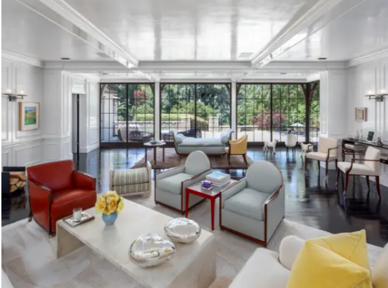 Rozsáhlá rekonstrukce domu zabrala manželům spoustu času. Až po dlouhých třech letech byl dům nachystaný k nastěhování. Jen pouhé dva roky si mohli s přáteli užívat velikou jídelnu, kde mohli pohodlně pohostit až dvacet osob a které vévodí veliký mramorový krb. Hlavní obytná místnost má masivní prosklení vedoucí do krásné zahrady. Propojení exteriéru s interiérem je pro kalifornské domy typické. Dům s francouzským šarmem má tak i na pozemku řadu příjemných posezení, venkovní kuchyni i prostorný stůl. Prodávajícím domu byl manažer Jonathan Brooks, který od nich dům koupil v roce 2006, když se manželé rozvedli. Byl součástí společného fondu. Dům byl na trhu déle než rok. Poprvé byl uveden na trh v květnu 2019 za 49 milionů dolarů a v říjnu 2019 byla jeho cena snížena o 4,5 milionu dolarů. Před pár měsíci se prodal mimoburzovním obchodem za 32,5 milionu dolarů.