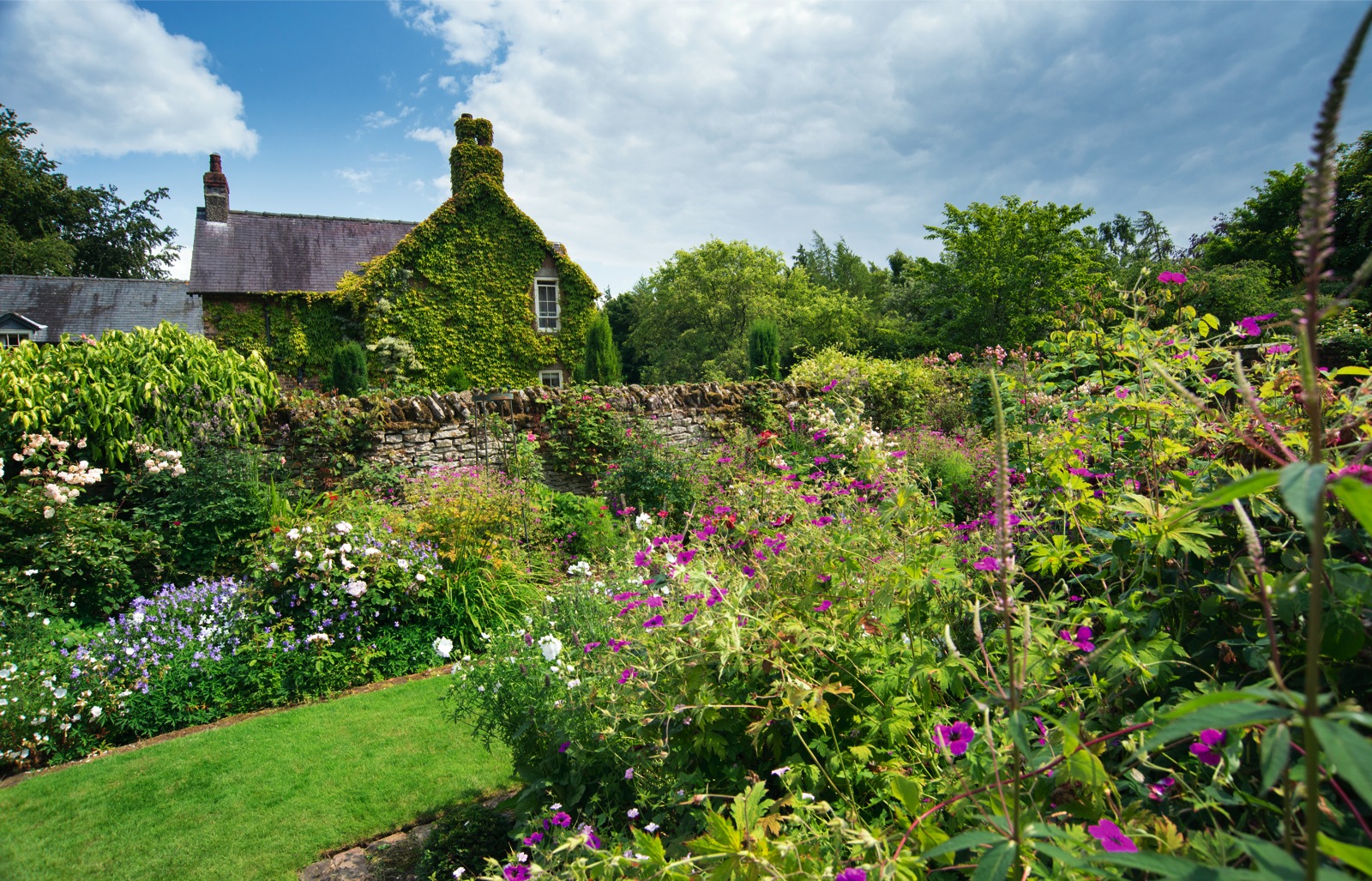 Kombinace růží, polodivokých trvalek a něžných letniček jsou osvědčené a nestárnoucí a ve venkovské zahradě malují scény jako z romantických filmů Rosamunde Pilcherové. Barevnou smršť zjemňují zelené tóny stromů a přísavníku, který polyká cihly na domě z 19. století. Z oranžerie hýčkané sluncem od rána do večera unikají skrze otevřená dvířka silice aromatických muškátů. Není to žádná konvenční voňavka, ale jemná citronová sprška, která osvěžuje mysl, když se červený líh teploměru vyšplhá do závratných výšin. Nevonné druhy se dožadují pozornosti také. Dychtivě celé léto natřásají květy s růžovoučkými kanýry. Zdi z cihel i kamene, husté živé ploty a stromy ulevují zahradě od zkázonosného větru a vymezují hranice mezi zahradou okrasnou a užitkovou. V rozích vznikají náladová zákoutíčka s květináči, která jsou pro zahradu tím, čím je koření pro mistra kuchaře.