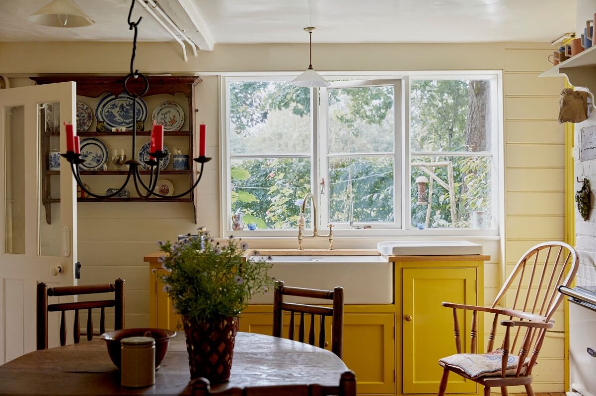 Na návštěvě pohádkového domu na venkově: Jasně žlutá kuchyně a na zahradě stromový dům