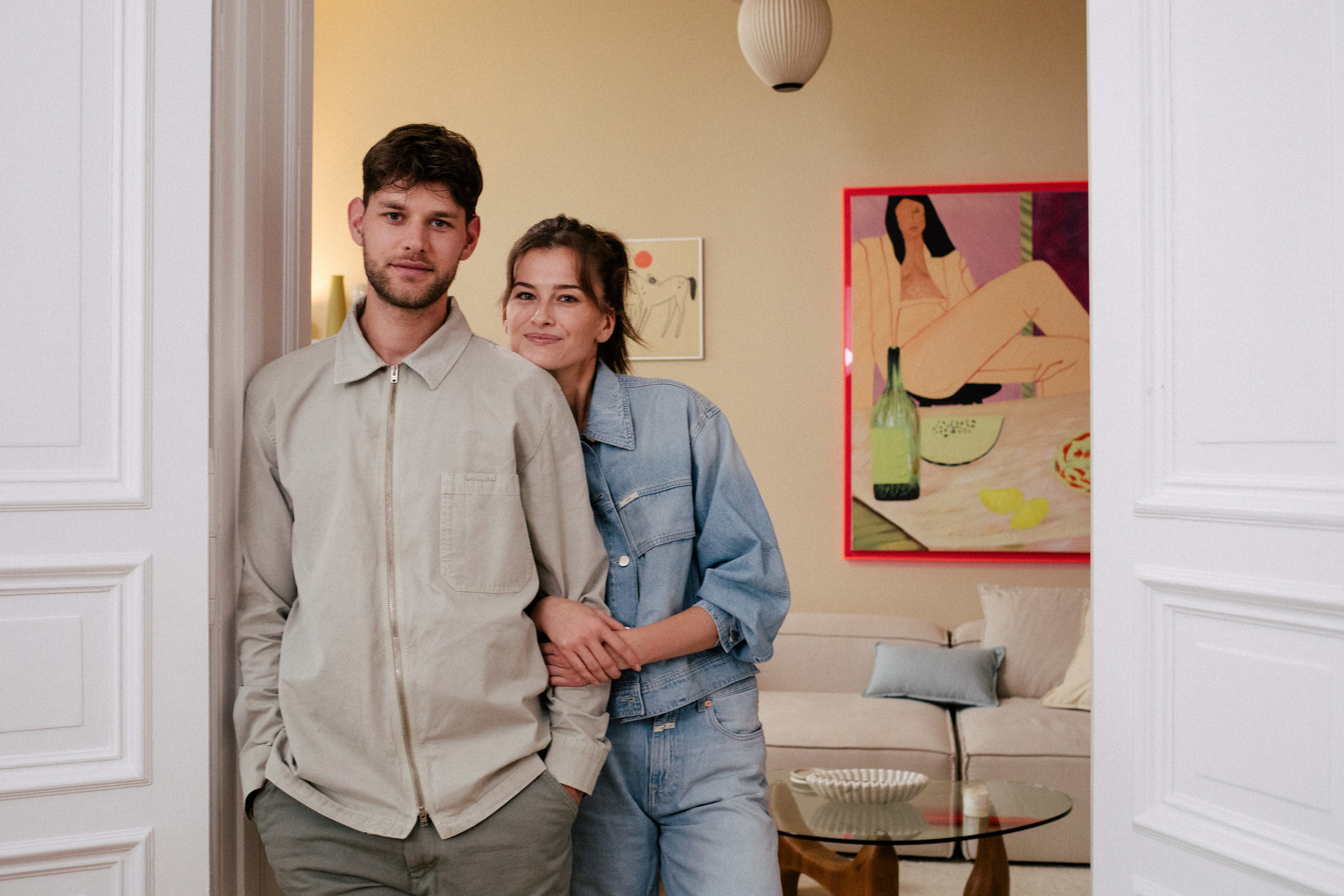 „Měla to být vždycky pokoj pro hosty, tak jsme mu i říkali. Pak jsme si uvědomili, že asi nejsme zrovna rození hostitelé. Tak se z něj stala kancelář. A teď je z ní velký pokoj, který se jednou určitě promění v dětský pokoj. Tomu se nevyhneme,“ říká Florian. Dominantou této místnosti je královsky modrá pohovka. Je výrazná, a tak už ji doplňuje jen jemná paleta barev, například bílé křeslo, béžové stěny, koberec a tmavě hnědý pracovní stůl. Skříňka v pastelově žlutém odstínu je plná knih, svícnů, váz, misek a nechybí ani malá rostlina. „Myslím, že i když by si to člověk nemyslel, máme doma hodně béžové, připadá mi to nakonec barevnější, než jsem čekala. Hlavně v obýváku a pracovním koutku. Člověk si myslí, že chce mít jeden dominantní prvek… ale prostě to tak nějak vyšlo,“ dodává Melisa. A možná právě to dělá jejich domov tak příjemně lidským.