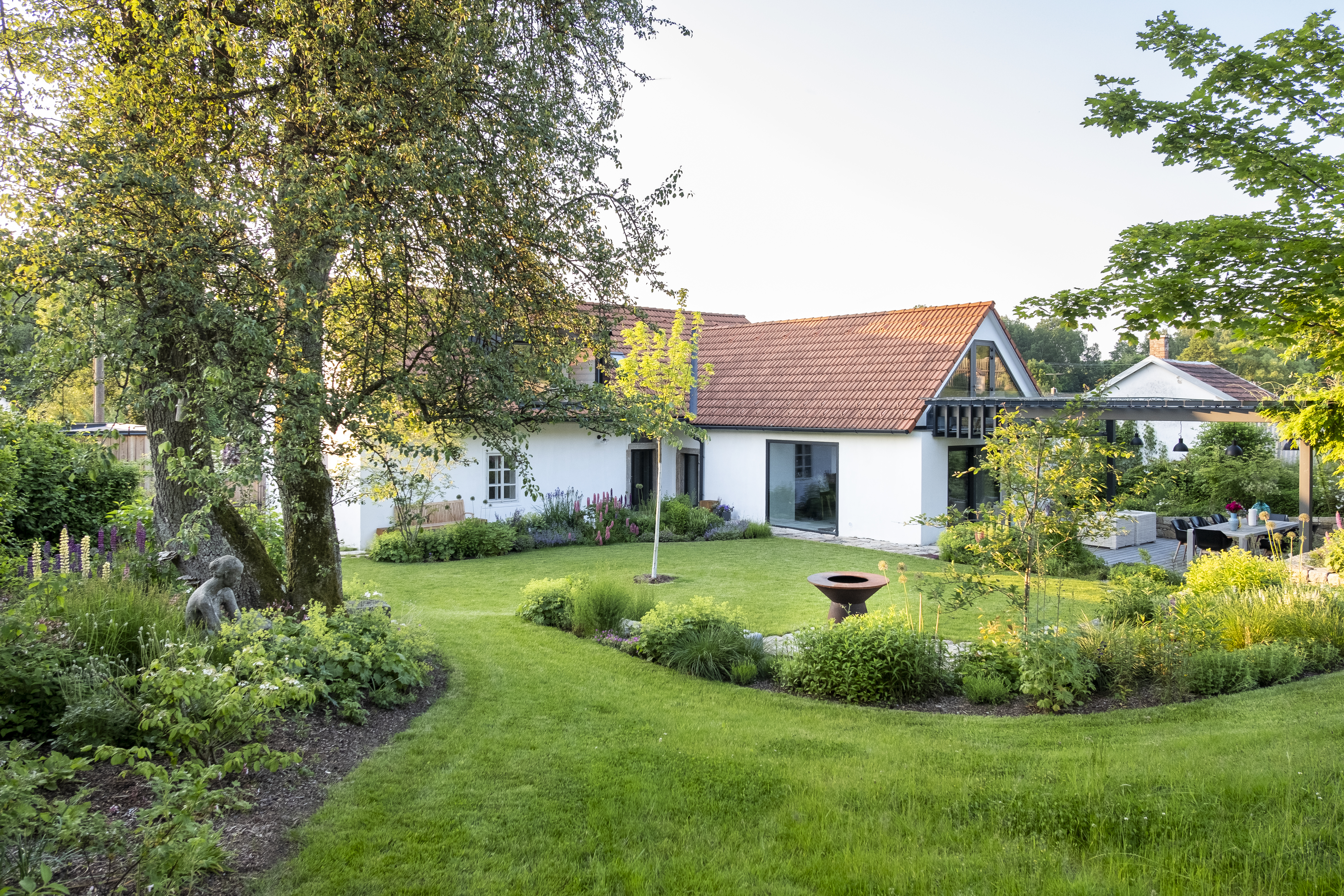Největší síla této zahrady spočívá v tom, že nepotřebuje být dokonalá hned. Každý rok přináší drobné změny, které ji posouvají dál. Právě proto působí přirozeně. Jedním z hlavních úkolů bylo propojit pozemek s okolní krajinou a posílit genius loci, který se v prostoru skrýval, ale nebyl dostatečně čitelný. Zahrada neleží izolovaně, ale přirozeně přechází do okolí. To je přístup, který se u venkovských staveb vyplácí víc než jakýkoliv stylový koncept. Architekti Ferdinand Leffler a Kristýna Vaverková proto pracovali s jednoduchými liniemi a přirozenými materiály. Vyhýbali se prvkům, které by působily příliš městský nebo dekorativně. „U venkovského stavení je třeba dbát hlavně na poctivé materiály. Tuctovou zámkovou dlažbu možná zkousnete u městského domu, ale venkovské chalupě už vysloveně škodí. Chce to bytelné dřevo, kámen a případně cihly, a když už beton, tak jedině ve své nejryzejší podobě. Původní plaňkový plot byl přesně tím detailem, který jsme samozřejmě chtěli zachovat, abychom místu ponechali původní ráz a chuť vzpomínek.“