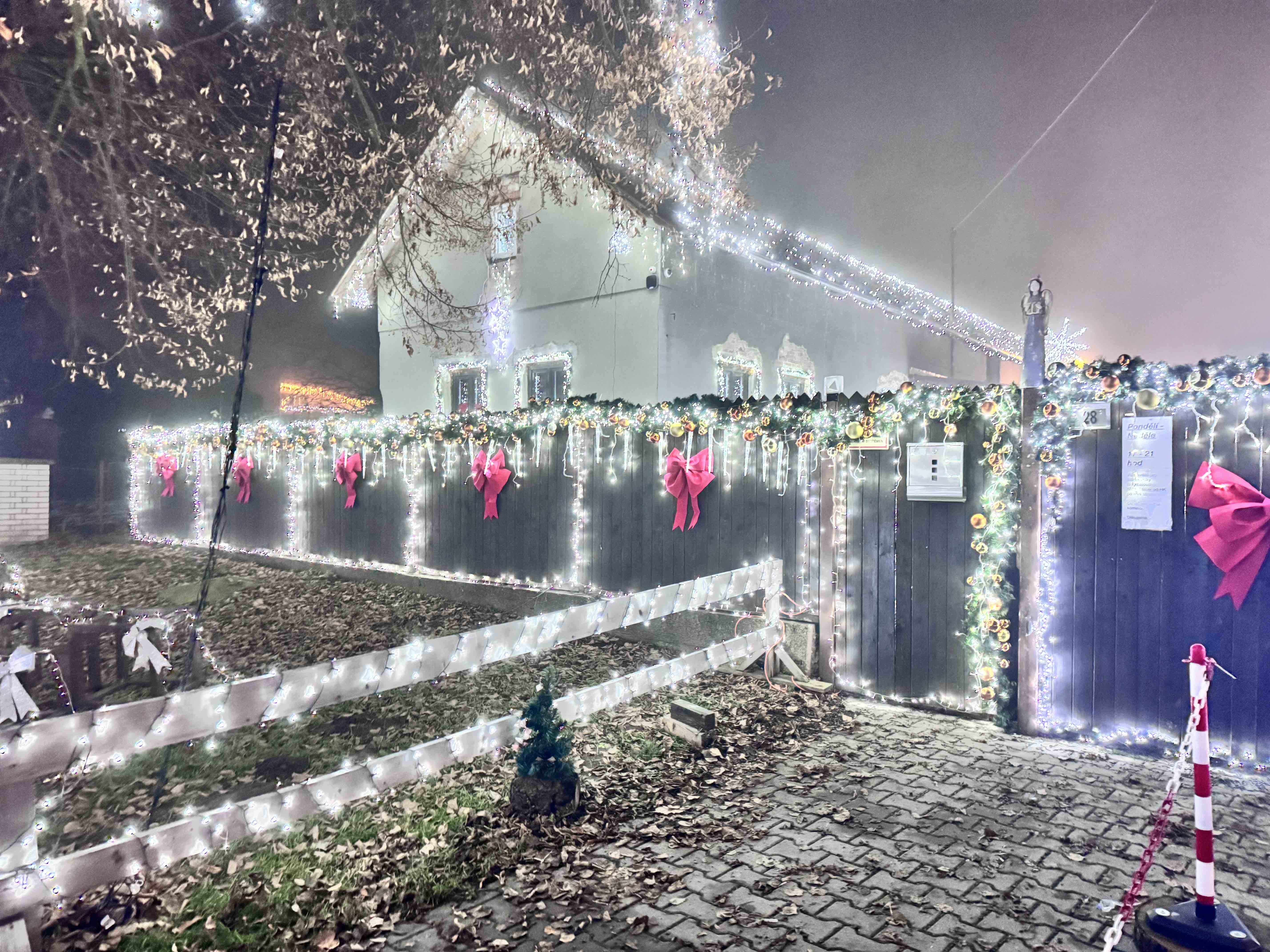 Osvětlený dům v Libišanech už dávno není jen o světýlkách. Stal se symbolem radosti, sdílení a sousedské pohody. Každý, kdo přijde, může si užít pohled na třpytící se zahradu, barevné dekorace i hudební doprovod, který dotváří atmosféru. Vše je navíc zcela zdarma. Majitelé, manželé Petra a Tomáš Hlouškovi, postupně každý rok rozšiřují svou instalaci a každoroční světelná výzdoba tak láká rekordní počet světýlek. Letos jde o 367 797 LED žároviček hlavně na řetězech o celkové délce 8 581,3 metry. Na rozsvícení takového kolosu je potřeba 409 trafostanic, 550 ks AA a 299 ks AAA baterií. Samozřejmě potřebují i zásuvky, prodlužovačky, měřiče spotřeby nebo přepěťovou ochranu. Majitelé zveřejňují i celkovou spotřebu, která je 3 480 W/h (3,48 kWh). Vánočně tu svítí celý dům, střecha, ploty, zahrada s betlémem, kde nechybí Josef, Marie a Ježíšek, vzrostlá lípa a neskutečné množství ozdob od jelenů, přes sněhuláky až po další postavičky. Světýlka letos svítí každý den od 17:00 do 21:00.