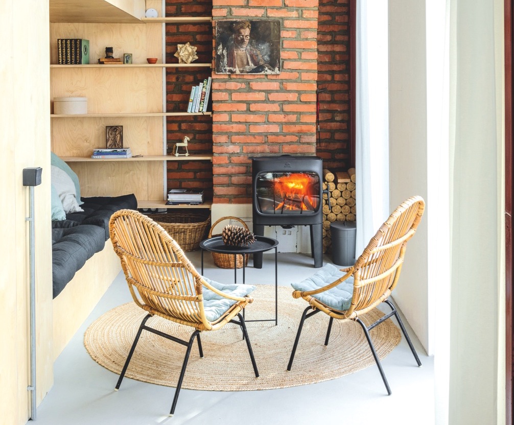 Olga s Jakubem se nastěhovali do prvorepublikové vily v Řevnicích, k níž patřila zahrada a zahradní domek. Tedy spíš dům, stavba totiž zaujímá 98 metrů čtverečních. Sloužila kdysi jako ateliér, který si v 70. letech postavil sochař Jindřich Severa. Záhy po jeho dokončení ale zemřel a život v ateliéru ustal na dlouhých čtyřicet let. Až právě Plojharovi se rozhodli to změnit. „Plánovali jsme základní rekonstrukci, aby tu mohli občas přespávat příbuzní, a hlavně jsme se chtěli zbavit azbestu, který byl ve stavbě použitý,“ vzpomíná Olga. Manželé a dnes také rodiče dvou malých dětí stále s údivem vzpomínají na výjevy jako ze sci-fi filmu, kdy po zahradě běhali lidé v ochranných oblecích, odnášeli nebezpečný materiál a průběžně se omývali u speciálních přístrojů. Azbest byl pryč, vše ostatní ale nabralo trochu jiný směr a lehká rekonstrukce přerostla v zásadní přestavbu.