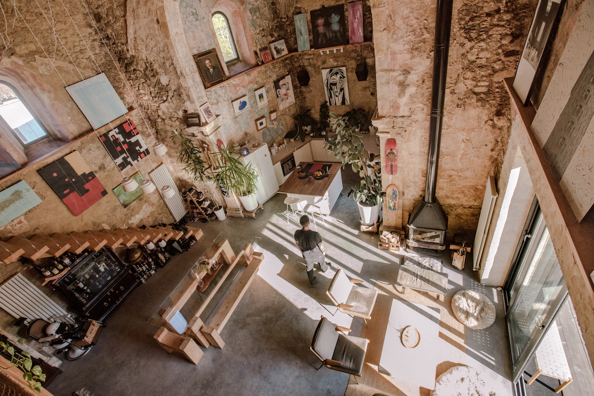 „Narodil jsem se 20. června 1984 v Caracasu ve Venezuele. Když mi byl rok, maminka onemocněla a zemřela. Otec, moji dva bratři a já jsme se vrátili do našeho španělského Bilbaa, odkud rodina původně pochází. Nevyrůstal jsem v nejběžnějším prostředí. Kvůli těmto okolnostem jsem se stal tím, kým jsem dnes,“ vypráví Tas Careaga Irazabal. „Vždy jsem byl dost zvídavý a snažil se být něčím víc, najít svou vlastní cestu. V šestnácti letech jsem přišel o otce a ze mě i mých bratrů se stali sirotci. Díky rodině, zejména bratrům, se mi podařilo najít to, co mě dosud naplňuje. Sám jsem se vzdělával v multimediálním designu a v sedmnácti letech jsem si našel práci v designérském studiu. Moje první práce mi zajistila finanční stabilitu a já si mohl koupit svůj první fotoaparát. Se svým psem Tolou na jedné straně, skateboardem na druhé a fotoaparátem na zádech jsem se vydal na úžasnou cestu!“ A ta je víc než zajímavá. Po třech letech práce založil TasLab, úspěšné studio multimediálního designu a reklamy a ve volném čase stále fotí, protože svět vnímá jako jedno velké umělecké vyjádření. Přesně takové si přál také své vysněné bydlení. „Hledal jsem jedinečnou stavbu, která se nachází blízko Bilbaa na venkově. Nehledal jsem žádný konkrétní typ budovy, jen něco zvláštního. Po několika letech hledání jsem našel ruiny kostela, do kterých jsem se ihned zamiloval a v roce 2006 ho koupil.“ Kostel byl postavený v roce 1520 a na začátku 20. století prošel rekonstrukcí. V 70. letech byl zcela opuštěn, od té doby chátral a v roce 2000 došlo k jeho odsvěcení.