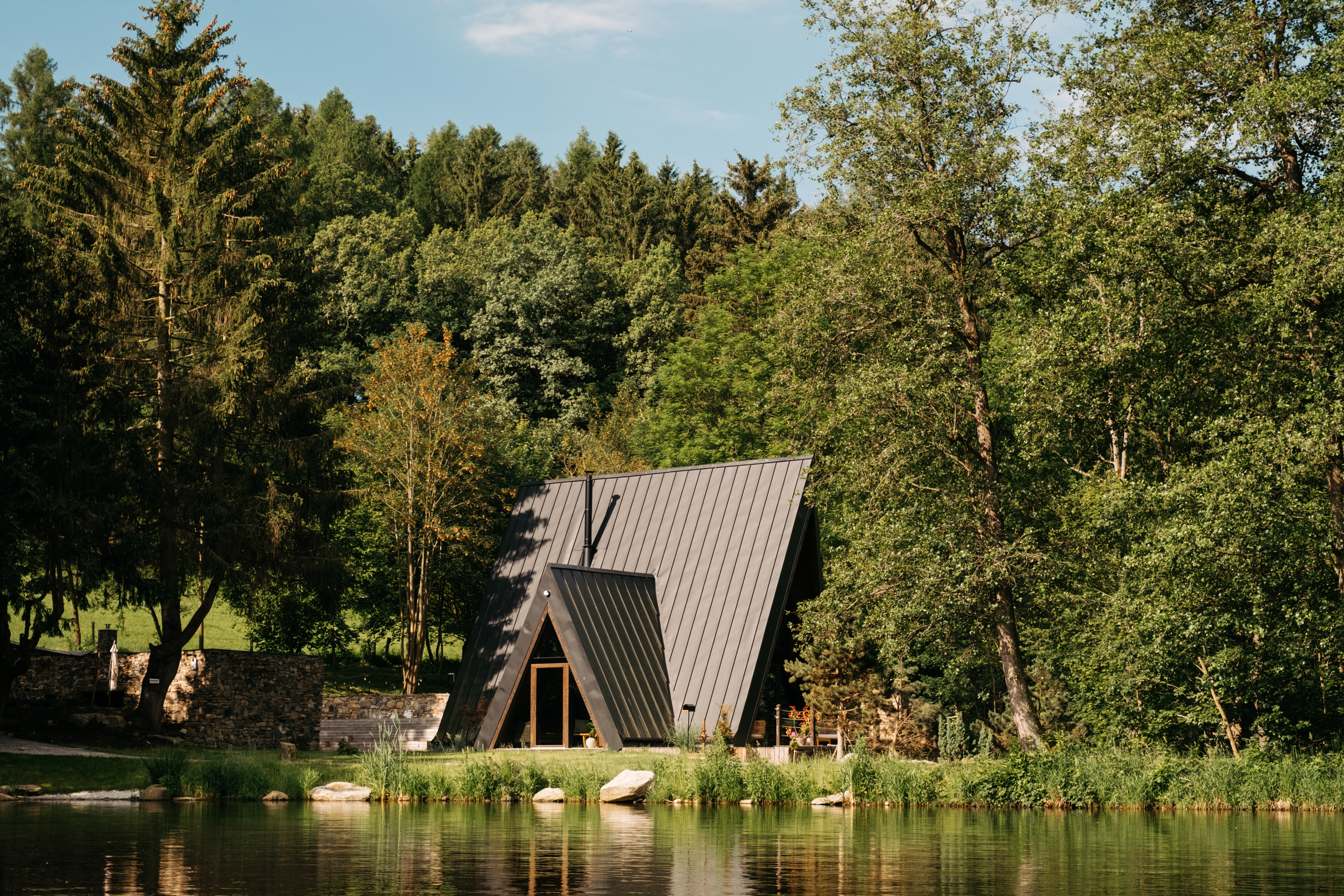 V unikátním prostoru o 30 000 metrech čtverečních stojí hned čtyři chaty, které odráží čtyři přírodní živly – Vodu, Zemi, Vzduch a Oheň. Každá z nich je jedinečná, ale všechny spojuje důmyslný design, absolutní komfort a důraz na propojení s přírodou. Chata Voda doslova pluje na hladině rybníka, obložená nesámovým dřevem s dominantním otevíracím oknem přes celou jednu střechu, s vlastní saunou a střechou sloužící zároveň jako terasa. Země stojí na pevných základech z kameně původního mlýna. Uvnitř majitelé použili materiály jako je pálená hlína, beton, kámen a k tomu zemité barvy a květiny. Má vlastní krb i vířivku. Vzduch má celou přední část prosklenou včetně stropu, takže můžete rovnou z ložnice pozorovat přírodu, divokou zvěř nebo hvězdnou oblohu. Poslední Oheň disponuje proskleným štítem a je zasazen do původních kamenných stěn ze 17. století. Oproti ostatním má vlastní uzavíratelnou ložnici, krb a soukromé venkovní wellness se saunou a ochlazovací kádí. Uvnitř převažují přírodní materiály jako kámen, dřevo a kůže. Působí tak velmi útulně. Za takovým rájem stojí spousta práce, starostí a odříkání. Co vedlo majitele k tak velkému projektu, jaké jsou jejich vize a co plánují dál? O to se s námi podělili v rozhovoru.
