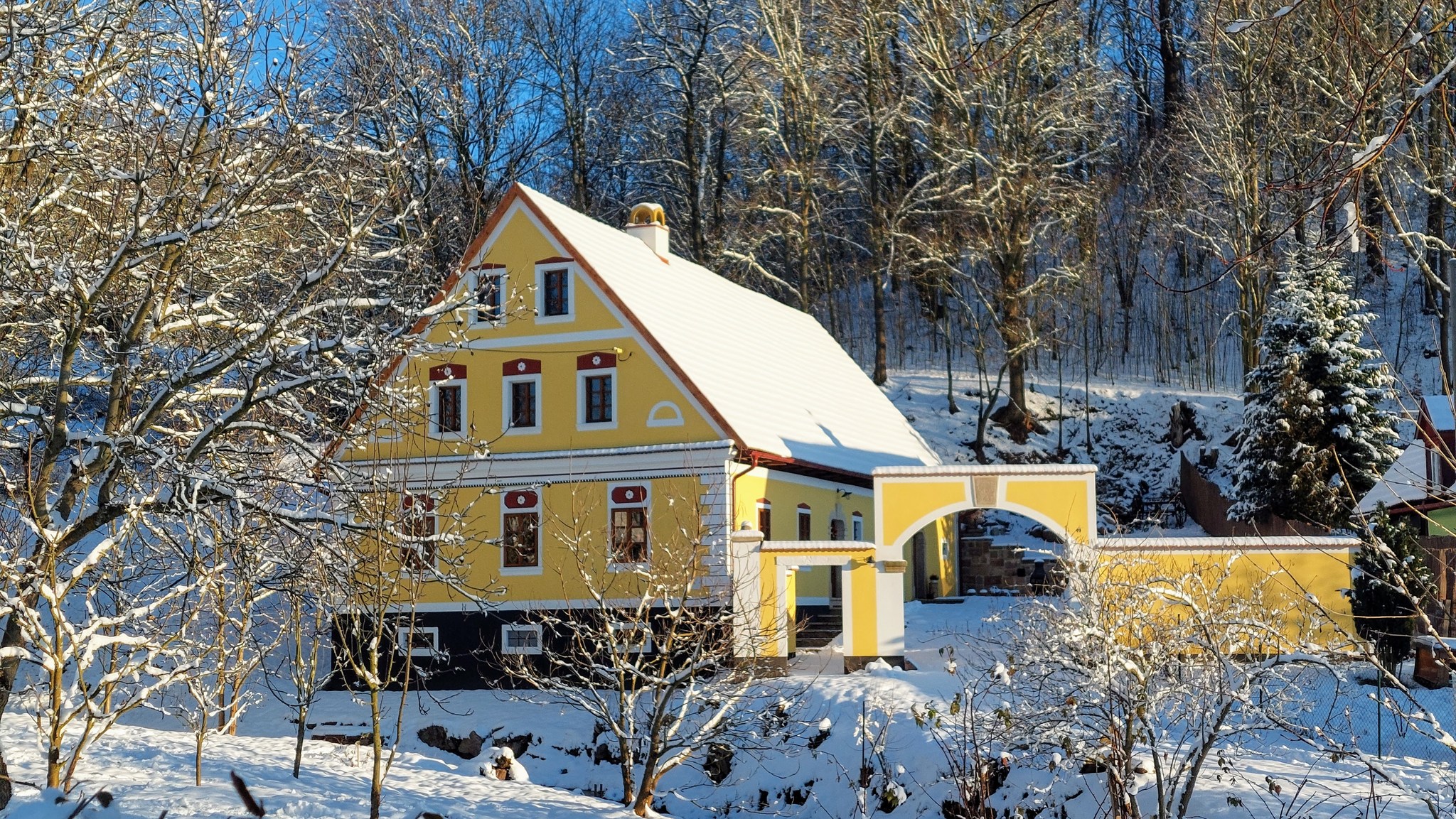 Interiér statku je vkusně zrekonstruovaný a zároveň plně vybavený pro pohodlný pobyt. Kromě klasické kuchyně a jídelny s velkým stolem tu najdete prostorné ložnice a světnici, která láká ke společnému posezení. Kuchyň je vybavena vším potřebným pro přípravu jídla i společné hostiny, a společenské hry či knihy pak doplňují atmosféru domácí pohody. Plně vybavená koupelna, sauna či terasa s ohništěm a grilem pak nabízí možnost relaxace a sdílených chvil s rodinou či přáteli. Ať už přijedete v létě nebo v zimě, je zde vždy co objevovat od cyklostezek přes Adršpašsko‑teplické skály až po místní barokní kostely a kláštery, které dotvářejí kulturní bohatství Broumovska. Broumovské stěny, Adršpašské skály nebo místní klášterní areály patří mezi nejpůsobivější přírodní a historická zákoutí východních Čech. Jejich monumentalita i klidná energie krajiny dělají z pobytu na statku ideální výchozí bod pro výlety i odpočinek. Region je protkán sítí cyklotras a stezek, které spojují místa, jež lákají k procházkám a objevování.