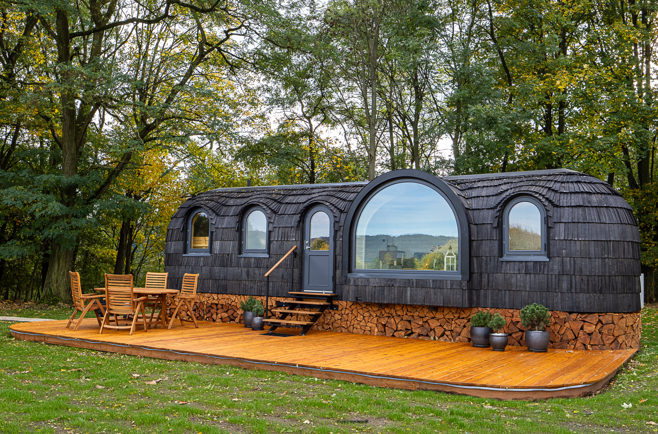 Skrytín najdete na pomezí romantického Českého středohoří a Českosaského Švýcarska. Celé místo vzniklo s nesmírným důrazem na detail a respektem k okolní krajině. Dřevěný šindelový domeček by mohl směle stát v proslulém Hobitíně. Není příliš velký, pohodlně se do něj vejdou dvě osoby a třeba domácí mazlíček. Nedaleko se pak nachází téměř zapomenutý zámeček Skrytín, který shodou okolností patří stejným majitelům. „Když jsem v roce 2011 kupoval tento magický zámek, mou prioritní vizí bylo přetvořit toto místo na náš domov. Vytvořit z něj místo setkávání, kde se budou lidé navzájem inspirovat, ale také zde budou moci zastavit, zpomalit a zklidnit se. Díky své jedinečné pozici mohou být okolní louky využívány jako tábořiště pro lidi, kteří chtějí utéct do přírody bez kempů a na samotě. Zároveň celý projekt buduji ve stopách ekologických trendů a zámek se tak stane energeticky soběstačnou jednotkou. Za využití hybridních solárních článků si dům sám vytvoří nejen veškerou teplou vodu, ať už na topení, koupání či do bazénu, ale také veškerou elektrickou energii. Věřím, že zámek Skrytín bude jedinečným místem relaxu a inspirace nejen pro vizionáře, myslitele, cestovatele, ale díky úžasné krajině také pro rodiny s dětmi či milovníky historie,“ vypráví o své vizi majitel Martin Hausenblase.