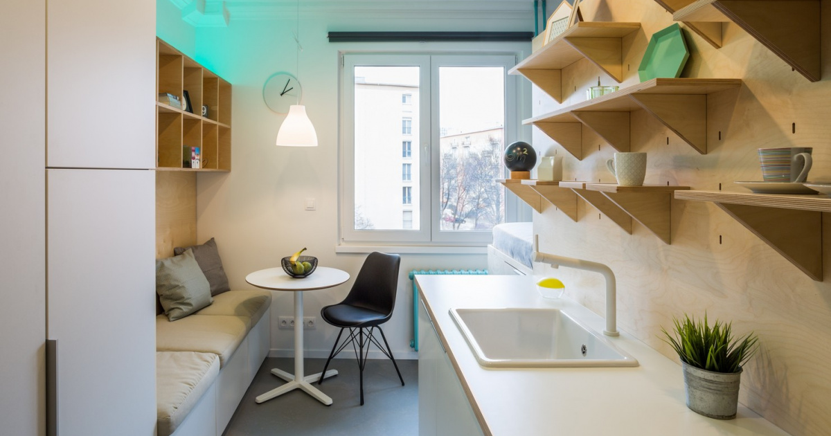 „Překližka není jen trend, myslím si, že to je materiál, který dává skutečně smysl. Dřevěná kresba na ní je opravdová, není to žádná tištěná textura. Je spolehlivá, lehce obdělávaná a jen stěží je možné najít do interiéru něco podobně upřímného. Existují samozřejmě další pěkná řešení, například barevné MDF desky, ty ale na našem trhu ještě nejsou tak lehce dostupné,“ vysvětluje designérka a k tomu s úsměvem dodává: „Ta velká dřevěná kostka pod postelí je šatník, kde máme všechno, co by jinak patřilo do skříně. Je fajn, když do ní může člověk rovnou vlézt.“ Skutečné řešení malých bytů totiž podle manželů nespočívá v originálních úložných prostorech, ale zejména v tom, věci zbytečně nehromadit. Na to si prý dávají obzvlášť pozor a ve sklepním ateliéru proto skladují výhradně jen sportovní a pracovní předměty. V jednoduchosti si libují, proto nechali stěny v kuchyni, obýváku i místnosti s vestavěným patrem čistě bílé, a ty tak teď spolu s dřevěnou podlahou tvoří vhodný základ pro jakýkoli výraznější doplněk. „Na barevné vybláznění jsme použili obrazy od kamarádů a oblíbených umělců, různé skříňky a stolky. Nakonec, ty se na rozdíl třeba od takové výmalby dají měnit mnohem častěji a jednodušeji. Anebo je zkrátka posunete jinam,“ uzavírá Elena.