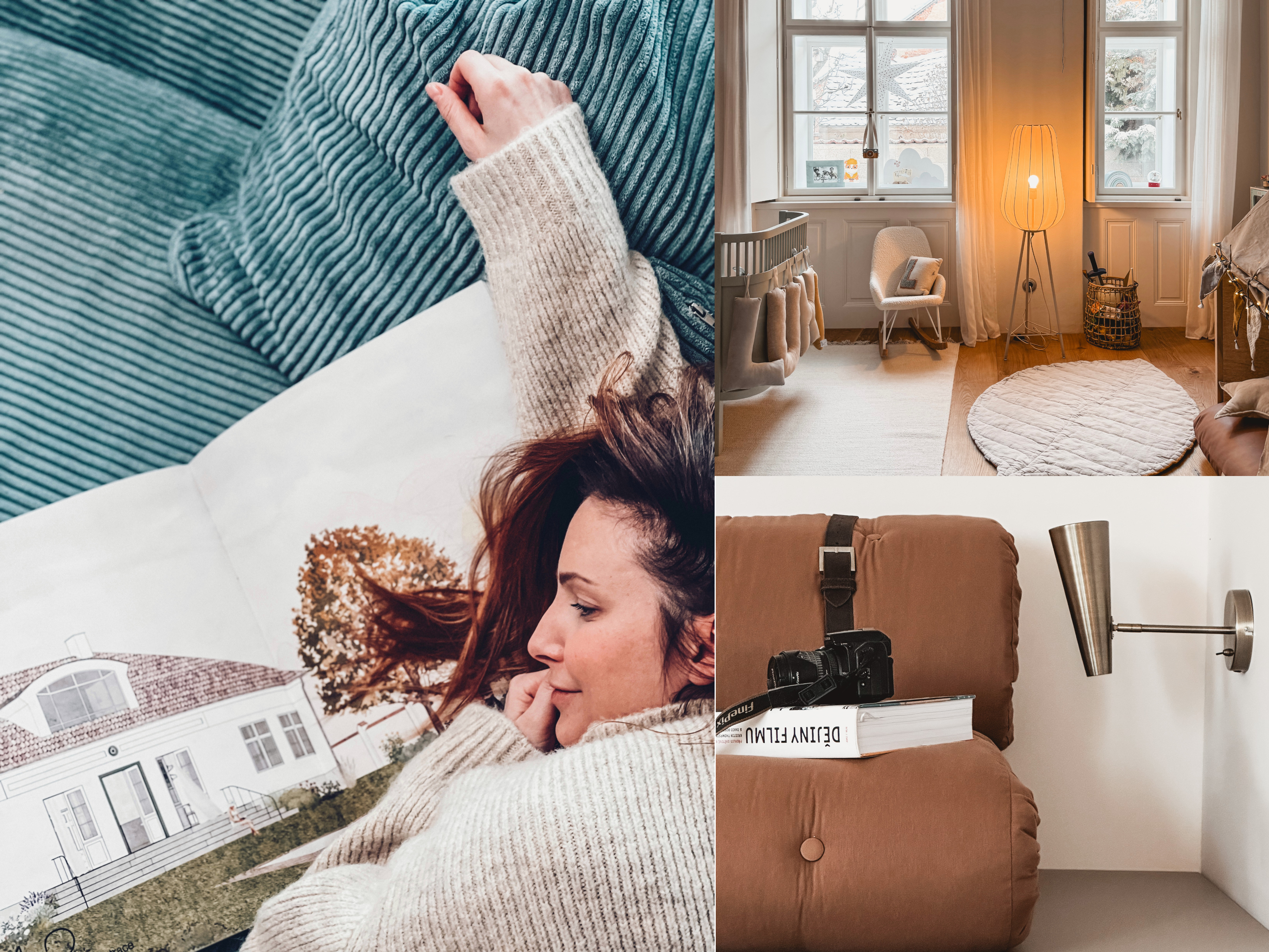 „Skoro všechny hračky jsou uloženy do různých košů, kufrů a bedýnek. Často pak hledáme, kam jsem to uklidila, takže každý den objevíme novou hračku s pocitem, že je nová,“ směje se Veronika, když popisuje, jak zařídila byt pro pětiletého Luku. „Chtěli jsme aby měl syn pokoj hned vedle centrální místnosti, že až bude starší a bude se zavírat kamkoliv, hlavně ať tam nejsou rodiče, tak aby byl alespoň na stejném patře. To se naštěstí povedlo. Taky jsem se bála, že bude tahat hračky do obýváku, jak byl zvyklý v našem předchozím bydlení na Slivenci. To jsem se bála správně,“ podotýká Veronika a potvrzuje, že je to u nich jako v každé jiné domácnosti s malými dětmi. „Hodně věcí má Luka ze svého původního pokojíčku jako třeba rostou postýlku Sebra z Westwing, kde jsem kupovala i houpací křeslo,“ popisuje. Řada menších kousků nábytků a dekorací je z běžných obchodních řetězců. Stůl a židle pořídila v H&M Home, lampa je z Bonami, keramické balónky na stěně najdeme v obchodě Lavly a výrazné stropní svítidlo je značky George Store. Řada dekorací, které dodávají interiéru ten pravý pocit útulnosti, je z obchodu Zara Home. Ozdobou interiéru jsou vypínače značky vypínače KATY PATY. Hlavním úložným prostorem je veliká skříň na míru, která zaujímá celou jednu stěnu pokoje. Navrhla ji architektka Anna Vaculíková ze studia Ti Architekti, kteří měli na starosti celou rekonstrukci domu.