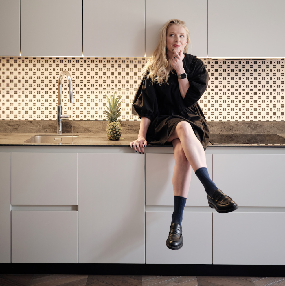 Jak bydlí interiérová designérka Jana Pařízková? V Praze na Letné, v bytě 3kk, který pro sebe a svou rodinu sama uzpůsobila. Jana Pařízková pochází původně z Vysočiny, do Prahy přišla studovat v 18 letech. S manželem si poté pořídili byt právě na Letné, což se jí dnes jeví jako skvělá volba i pro rodinný život. „Jsou tu dva velké parky, což je pro rodinu s dítětem ideální. A navíc to není tak kancelářská čtvrť jako třeba Karlín, o kterém jsme původně uvažovali,“ říká Jana, která v bytě žije s manželem a 6letým synem. Jana úplně nefandí minimalismu, zato ráda a citlivě kombinuje více materiálů, barev, textur a vrstvení. Má také v oblibě tapety. Na chodbě a v ložnici jejího bytu jsou použity vliesové tapety, v koupelně obklady z italské keramičky. „Kombinování materiálů je pro mě důležité, díky němu lze vytvořit interiér, který obejme, je útulný a má hloubku,“ vysvětluje Jana.