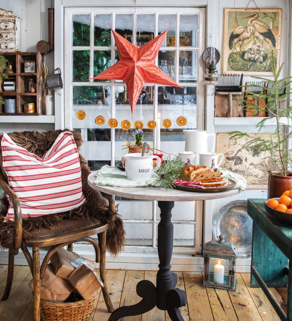 „Rozumějte, jsem tvořivý člověk a doma už jsem se se všemi věcmi, které k tvorbě potřebuji, nevešla. Zdá se vám to tu přeplácané? Já to tak mám ráda, protože každá věc má svou legendu, vzpomínku. Úplně cítím, jak jsem tu sama sebou, můžu se realizovat a být nablízku svým slepicím. Jsou jako pejsek, neustále v patách nebo po boku, když si čtu, procházím se nebo něco vytvářím v domku,“ říká Tone. Že má ráda přírodu, je vidět na každém centimetru. Zahradu i domek zdobí podle ročního období a vždy jen přírodními materiály. Teď tu pyšně vyznívají borovicové větvičky, šišky a mandarinky, podmanivě působí i zátiší ze zrezivělé plechovky a suchých klasů. „Miluji procházky po své zahradě. To ticho a pocit, že jsem její součástí. Často si z ní donesu nějaký úlovek na výrobu dekorace – naposled mi u kurníku učarovala rozházená pírka, která jsem ukryla do žárovek. Staly se z nich krásné ozdoby s melancholickým nábojem,“ říká Tone.