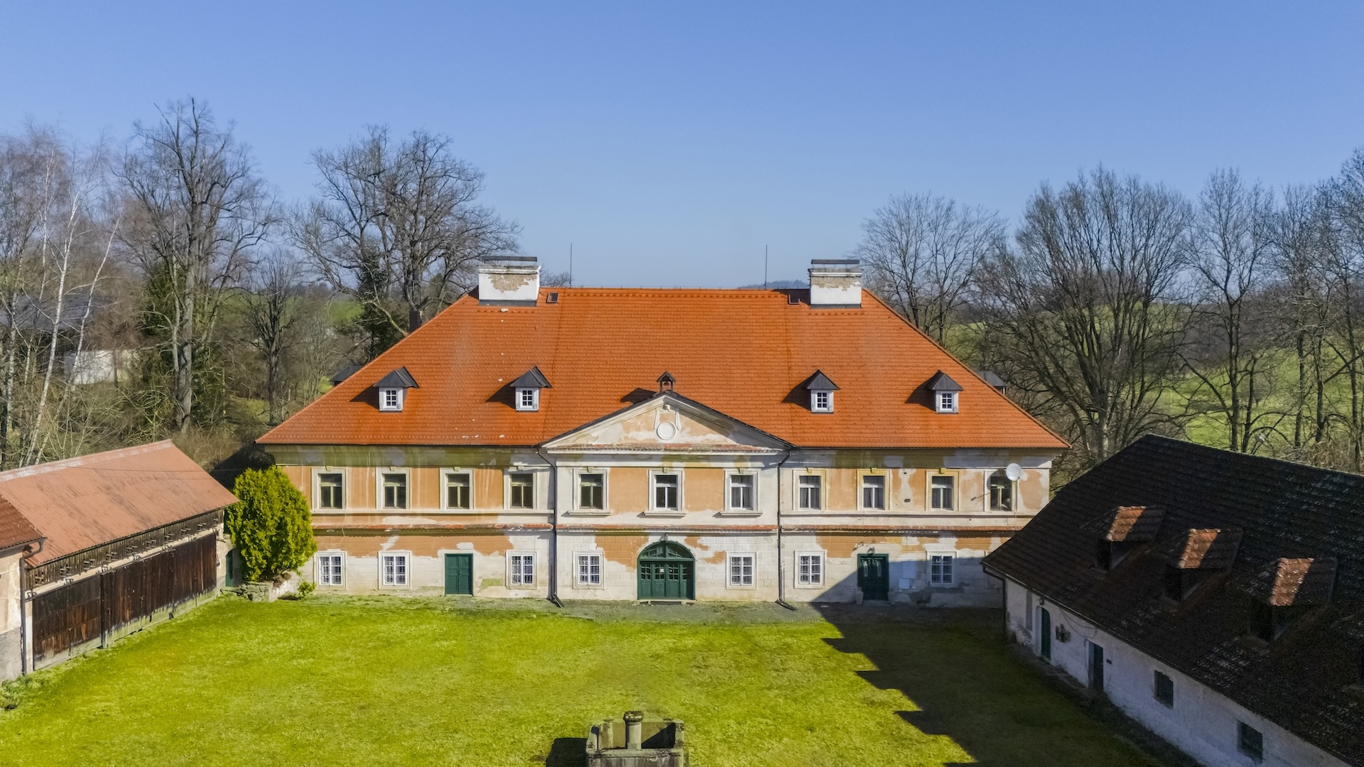 Majestátní areál zahrnuje nejen samotný zámek, ale i honitbu, stáje, park a desítky hektarů pozemků. Momentálně čeká na nového vlastníka, který naváže na jeho kulturní i společenské dědictví. Historie zámku sahá až do 14. století. V průběhu dlouhých let se měnilo podle architektonických trendů i politických otřesů. V roce 1675 panství koupil Alex Mikuláš Šafman z Hamrles, za jehož éry byl postaven renesanční zámek. V 18. století se majetek dostal do rukou šlechtických rodin Kolowratů a Villani, přičemž právě František Karel baron Villani dodal zámku v polovině 19. století empírovou podobu a nechal vybudovat kapli svatého Antonína. Ta byla bohužel v roce 1977 zbořena komunistickým režimem. Roku 1865 získal zámek Willibald Huttary a krátce na to František Hašek. Hašek během nacistické okupace opakovaně odmítl nabídku gestapa na prodej svých akcií nakladatelství Melantrich a tento postoj ho nakonec stál život. Byl zatčen a 5. června 1942 popraven. Po válce se o zámek starala jeho manželka Eliška, ale v roce 1948 jim byl majetek zkonfiskován komunisty, kteří zámek přetvořili na státní statek sloužící zemědělským pracovníkům. Většina historických prvků zmizela, interiéry byly zdevastovány a umělecká díla nedozírné hodnoty ztracena.