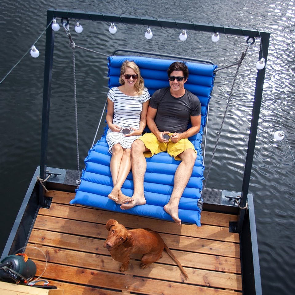 Linda pod značkou LIV navrhuje relaxační nábytek, a tak tato houpací lavice pochází samozřejmě z její dílny.