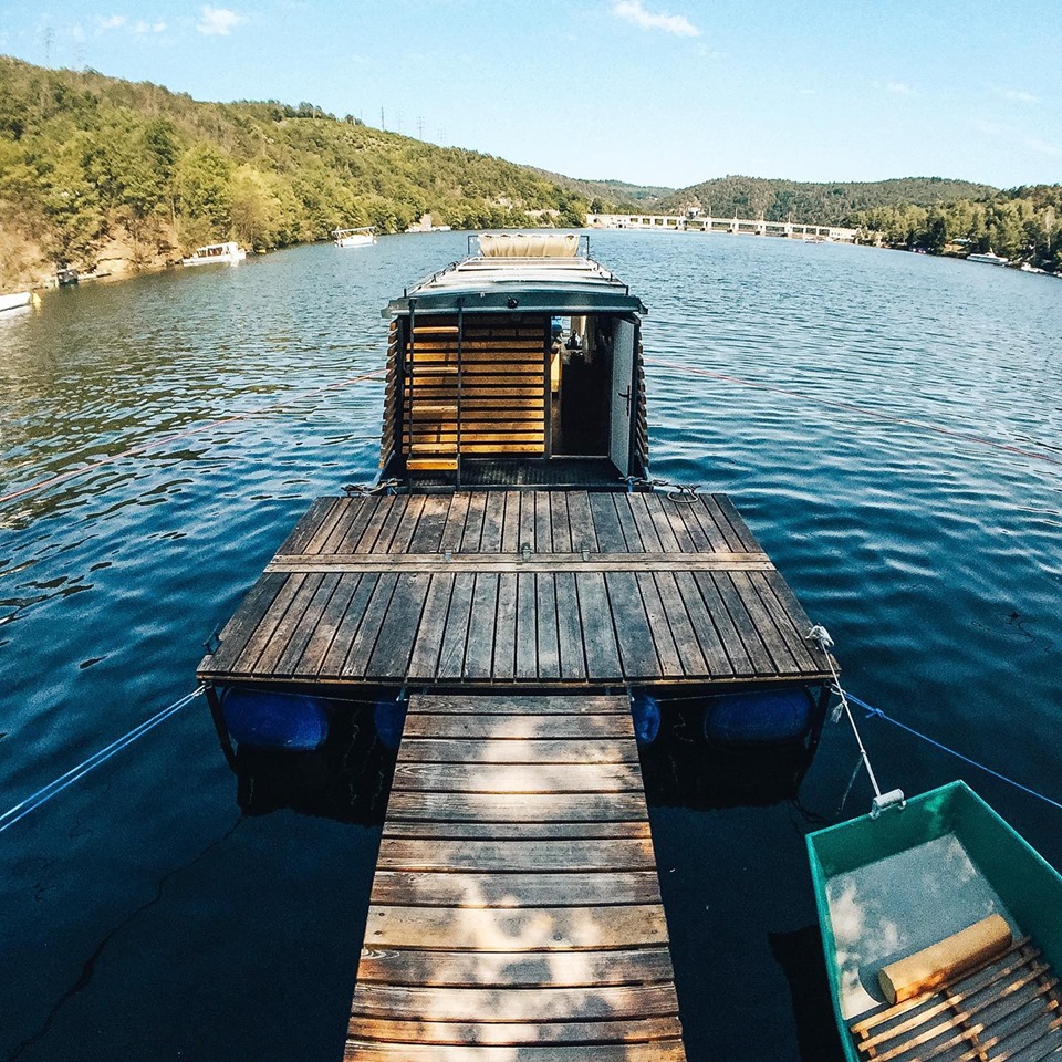 Hausbót kotví napevno u mola, proto k němu patří ještě pramice na plavby po okolí.