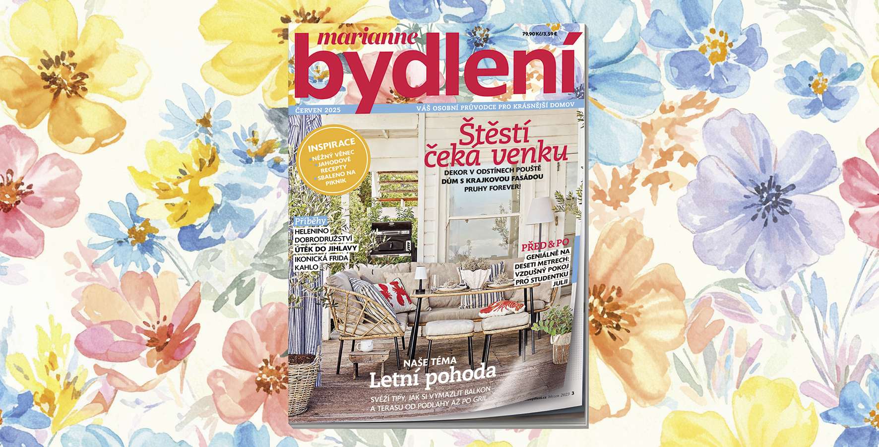 Léto na stránkách Marianne Bydlení voní jahodami a svěžím povětřím! S architektem Janem Žaloudkem jsme si povídali o jeho domu Oskar, který se stal absolutním vítězem Interiéru roku – pojďte s námi na návštěvu! Designérka Ema Traplová nás vzala do upraveného developerského bytu pro mladou rodinu a studentka Julie dostala geniálně proměněný pokojíček. Inspirací nabité číslo s tipy na báječné nákupy a DIY letní věnec je právě na stáncích i online!