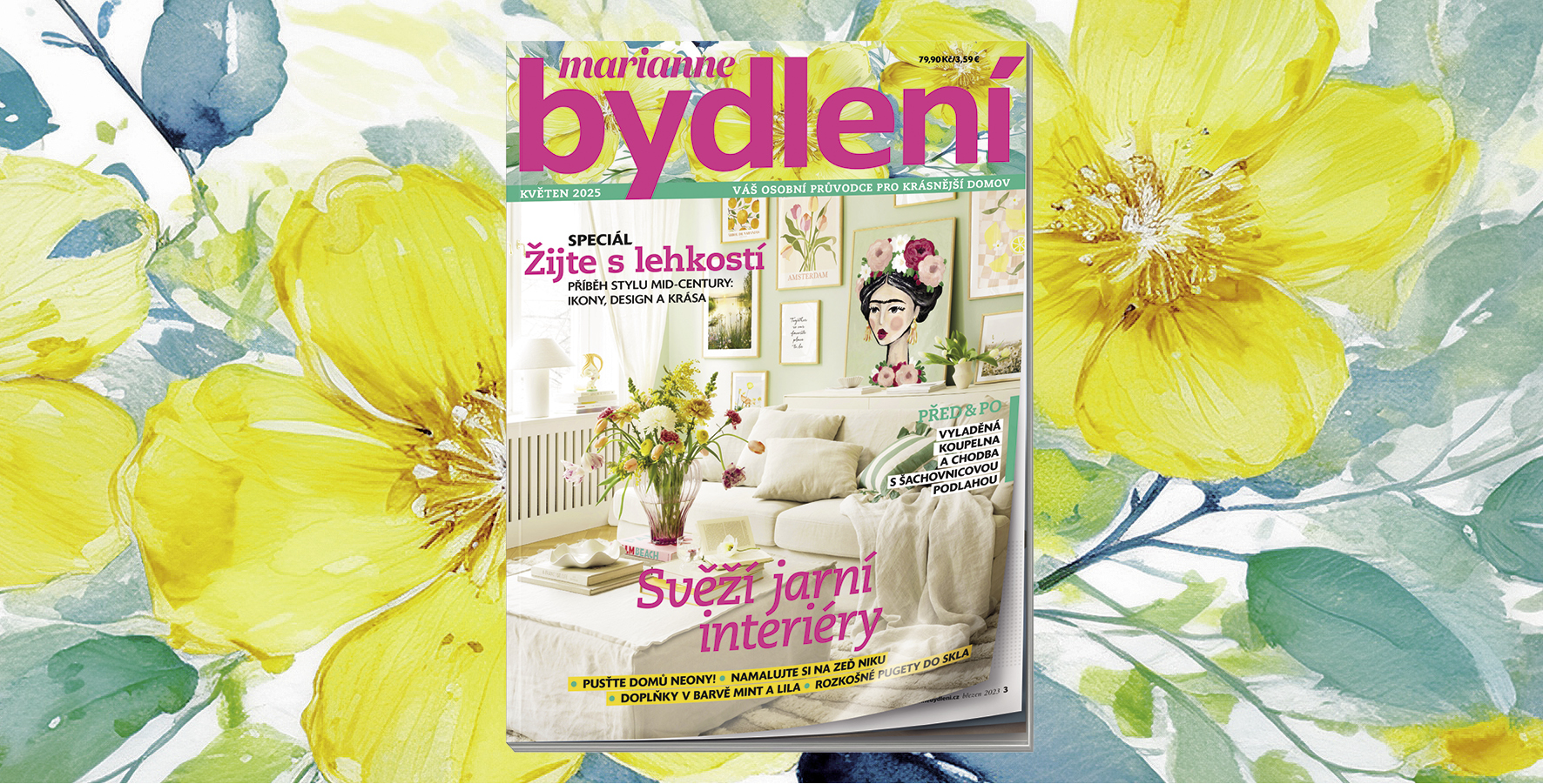 Víte, jaký styl se označuje termínem mid-century? Jedná se o to nejhezčí z designu poloviny 20. století. Připravili jsme pro vás velký speciál na osmnáct stránek! Těšte se na příběhy ikonických kousků, slavná jména a tipy na nákupy. Kromě toho pro vás máme fantastickou návštěvu v Miláně, neonový dekor, koupelnové novinky a úžasnou proměnu chodby. Marianne Bydlení je plné jarní energie! Nakupujte na stáncích nebo online.