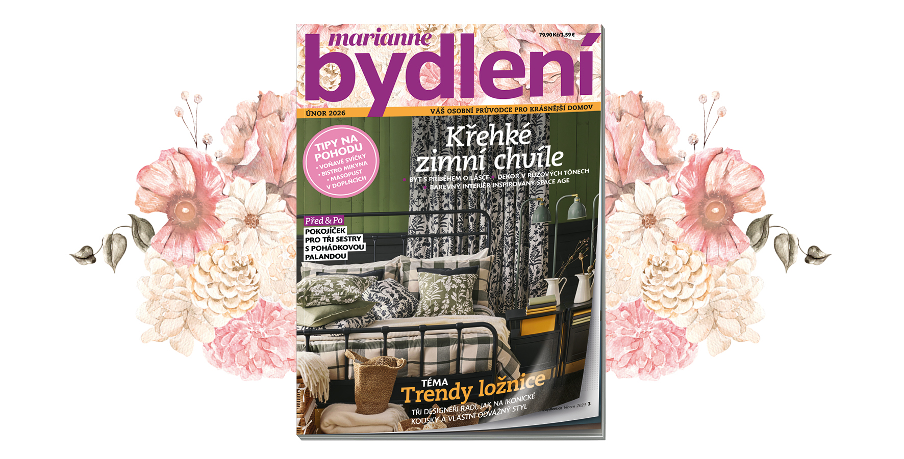 Nalaďte se na odstíny růžové a bronzu v rubrice Dekor, na lehce bláznivý interiér inspirovaný vesmírnými lety a Twiggy a pusťte se do zařizování ložnice tak, aby se z ní stala nejoblíbenější místnost v domě. Marianne Bydlení má sílu provést vás koncem zimy v lehkosti a dobré náladě – ostatně fejeton stand-up komičky Adély Elbel o samoobslužných pokladnách vás rozhodně rozesměje. Nové Marianne Bydlení právě na stáncích nebo online.